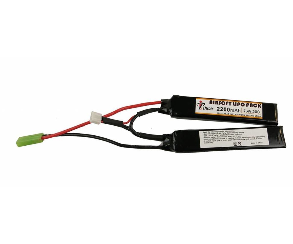 Power up your AEG with new high capacity Lithium Polymer batteries from iPower. Available in 7.4v, this 2200 mah battery will fit in most crane stocks on the market, as well as forearms, buttstocks, and any battery compartment that can accommodate a 9.6V mini battery. With a higher capacity than most lipo batteries on the market, these batteries will ensure that your fun day of airsoft is not interrupted by a dead battery.