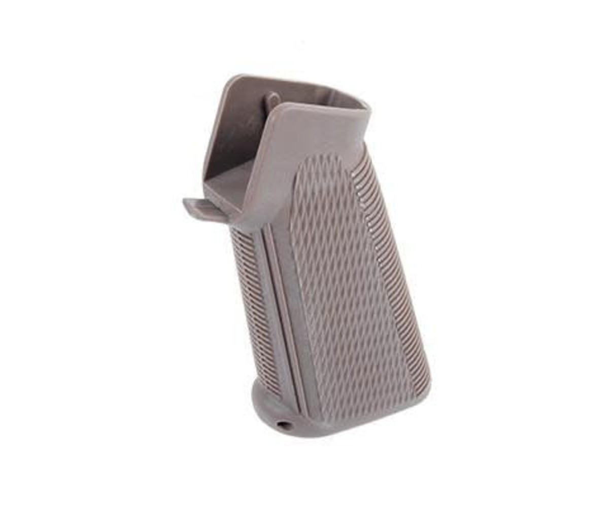 Looking to replace your M4 motor grip? Want a grip with lots of texture for a more sturdy grasp? Check out the King Arms M4 TWS Motor Grip Dark Earth. This Motor grip is designed to fit on M4/M16 style airsoft receivers. The grip also features grip stippling and ribbing all across the grip, helping to provide a grippier texture and offer a more firm hold. Note: this grip includes screws for the motor plate, but no other hardware is provided.