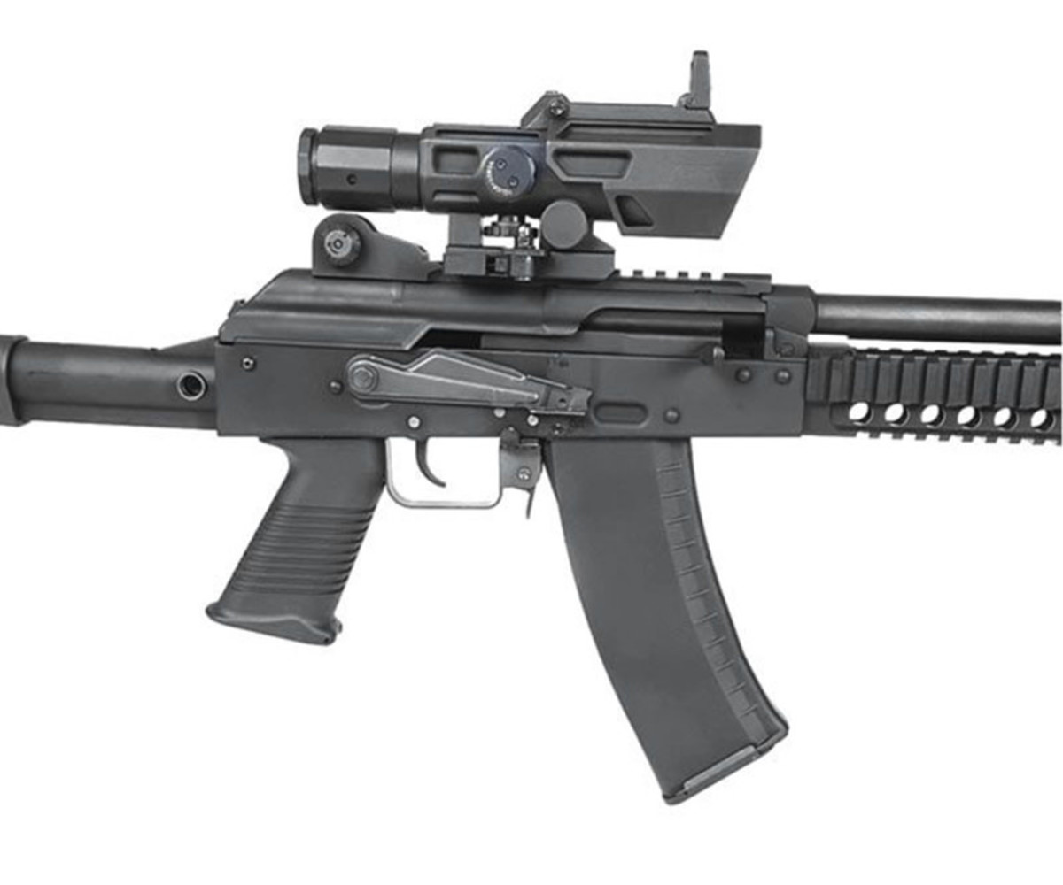 The venerable AK design has withstood the test of time, however it falls short in fulfilling the needs of the modern gunfighter. Custom shops recognized the need to modernize the reliable AK platform, and have introduced several key modifications. First, the gas piston has been extended to reduce the felt recoil. An AR15 style rear sight was added and moved to the rear of the dust cover. This not only allowed for windage adjustment, but also increased the sight radius by 64%. A Galil style thumb safety has been added as well as an M249 style pistol grip. The stock has been changed out to an AR15 carbine stock tube to allow the installation of AR15 retractable stocks.