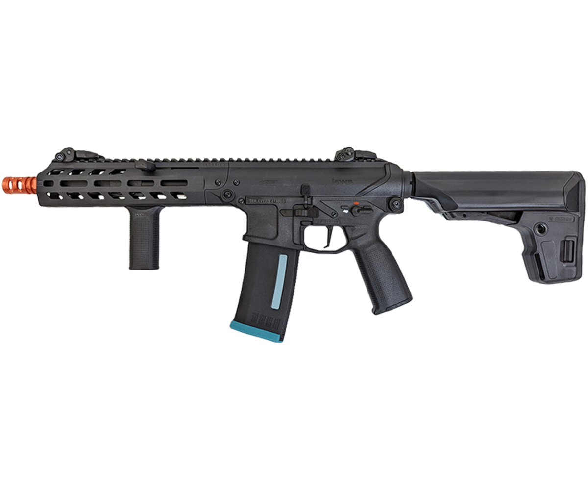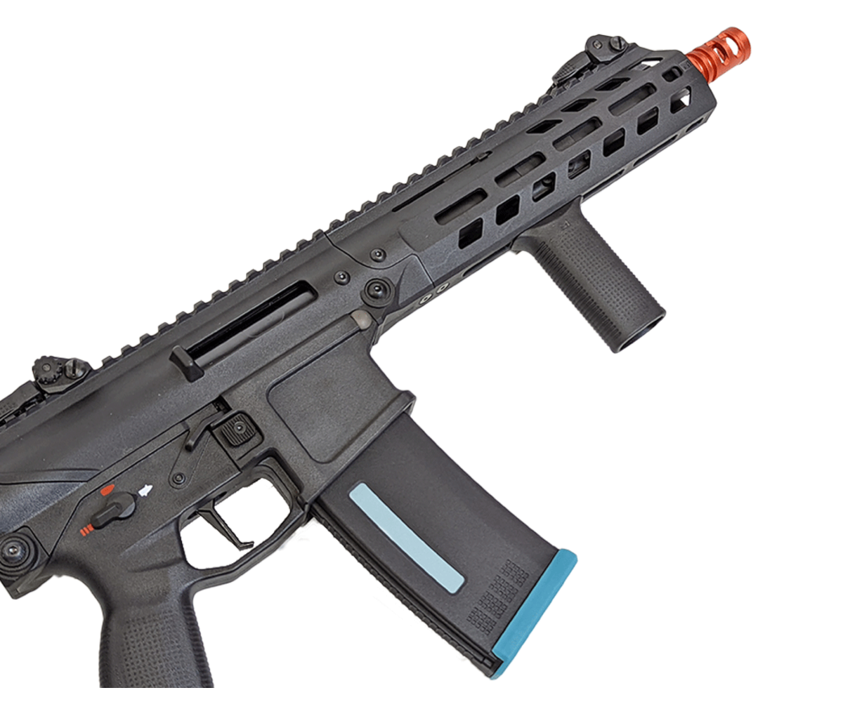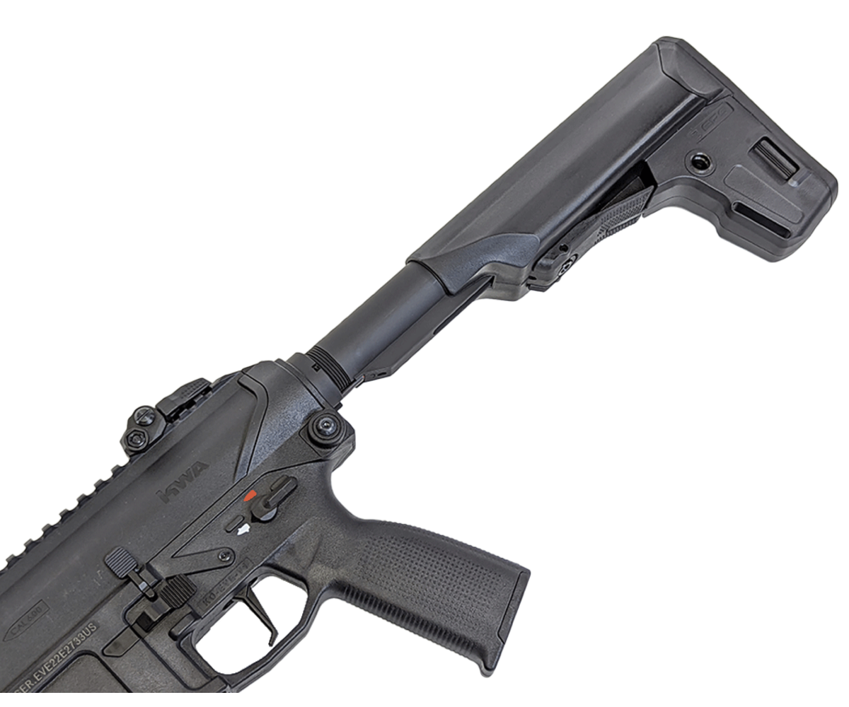 The side charging handle allows for convenient hop up adjustment and the integrated pistol grip is optimized for maximum ergonomics. The KO:EVE-9 comes with KO’s new slim line vertical grip and maintains a sleek look with the PTS stock. PTS Enhance Polymer Sights, two port muzzle brake, ambi fire controls, and optional quick detach sockets front and rear round out the external package. Internally, the KO:EVE-9 shares the same 2.5+ VPS gearbox as the TK.45c, Ronin T6, QRF Mod Series, and Ronin 47. Install your favorite aftermarket electronic trigger group, and you have an ultra-responsive and lightweight polymer AEG with legendary KWA performance.