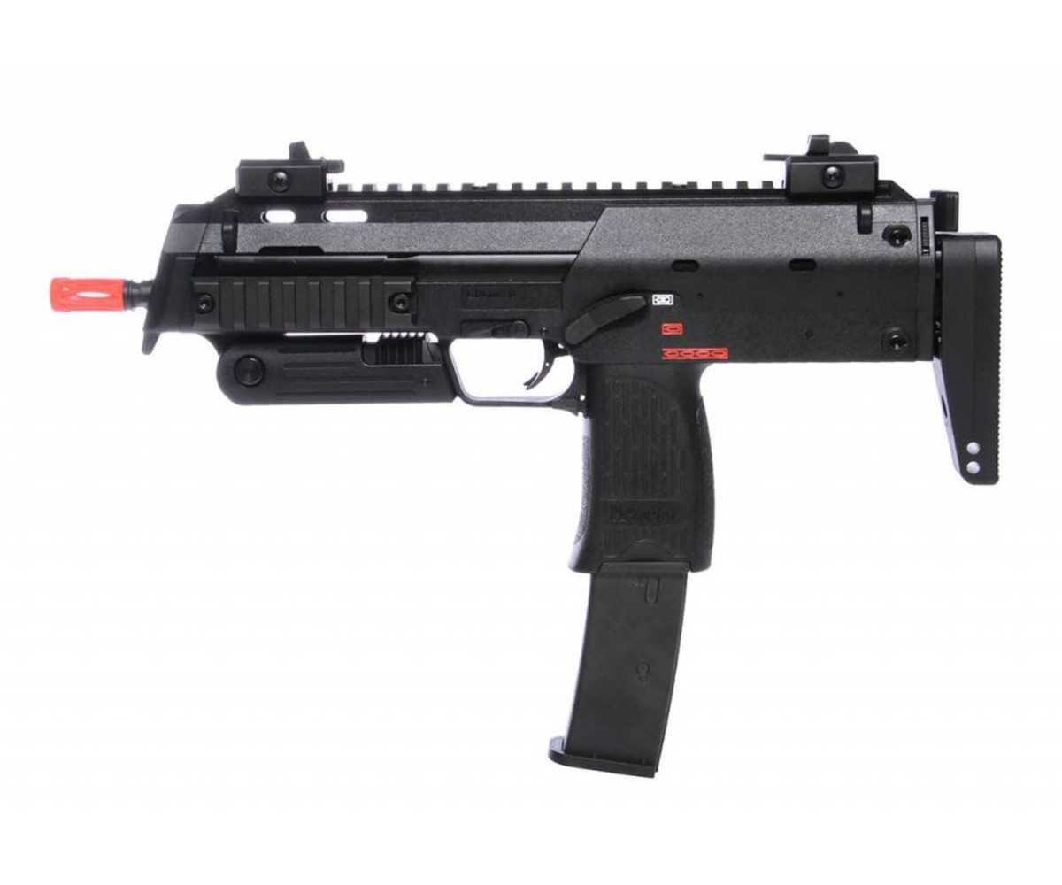 The H&K MP7A1 is a sturdy SMG, made of a fiber-reinforced polymer outer body and full metal action housing. The H&K MP7A1 was designed to be carried like a handgun but have a rifle-like impact; its Airsoft replica retains this feature and has both semi and full auto capabilities.