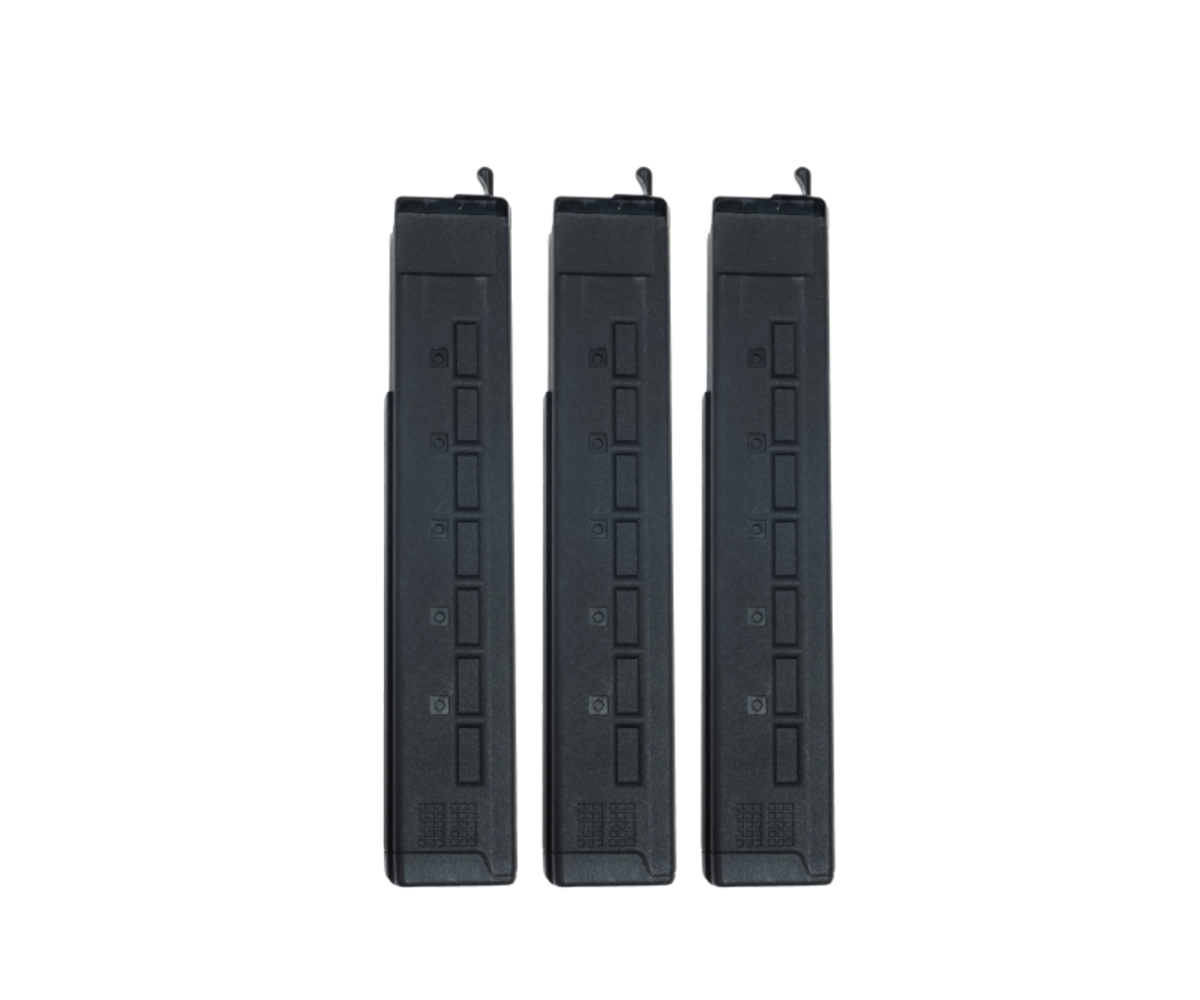 Stay locked and loaded with this 3-pack of 80 round mid-cap magazines for the new QRF MOD.3 AEGs! These durable but lightweight nylon polymer magazines have a side grip panel with KWA’s custom stippling texture, as well as extra grip lines on the front to help with weapon manipulation.