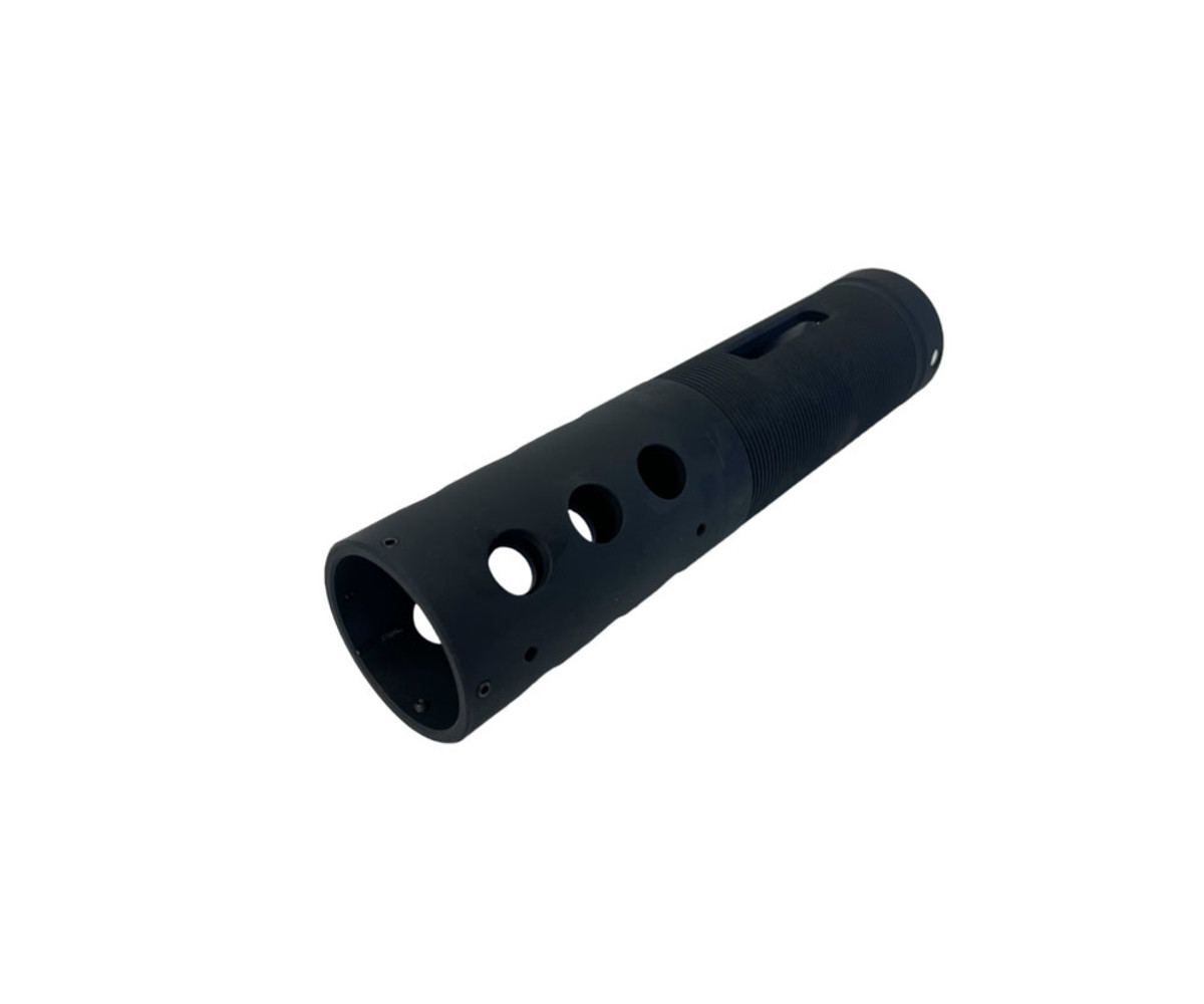 - 8.25" mock suppressor (14mm- thread, aluminum)