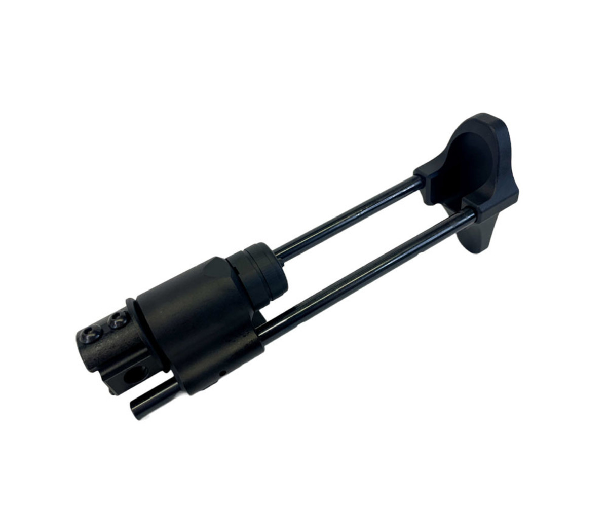 NOTE: it is critical that the two set screws in the rear of the receiver are gently tightened and thread locked. If they are screwed in too much, it will pinch the bolt and cause the gun to jam. Furthermore, take great care when centering the gun body in the receiver to make sure the bolt does not touch receiver during movement. If there is any friction, it will decrease your velocity.