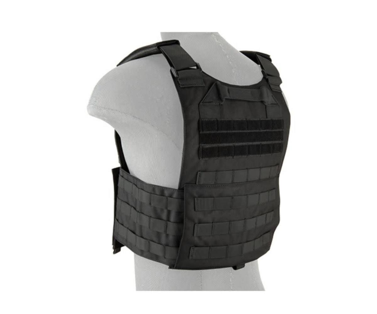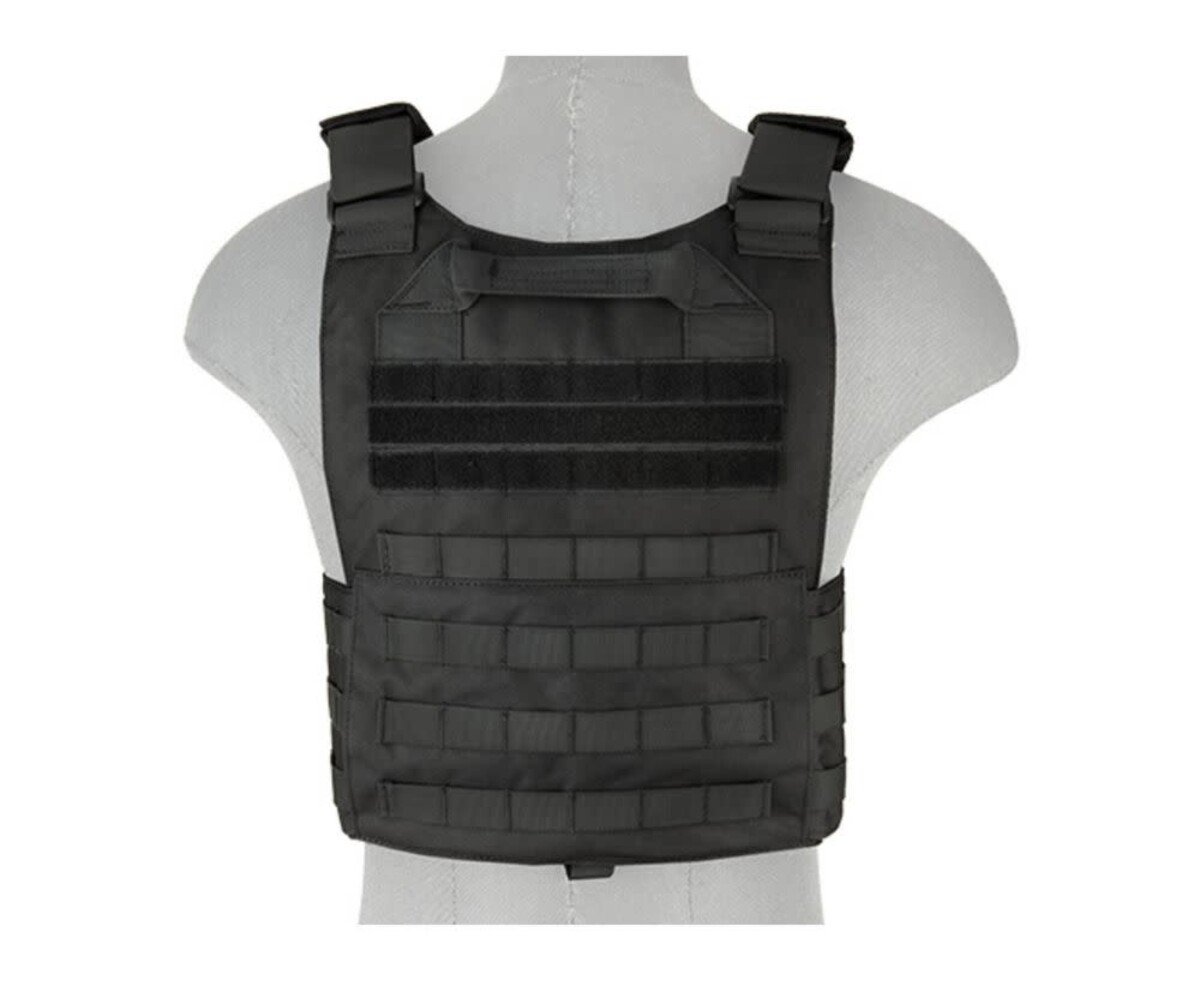 - Lightweight plate carrier shell — designed to accept soft or mock plates (plates not included).