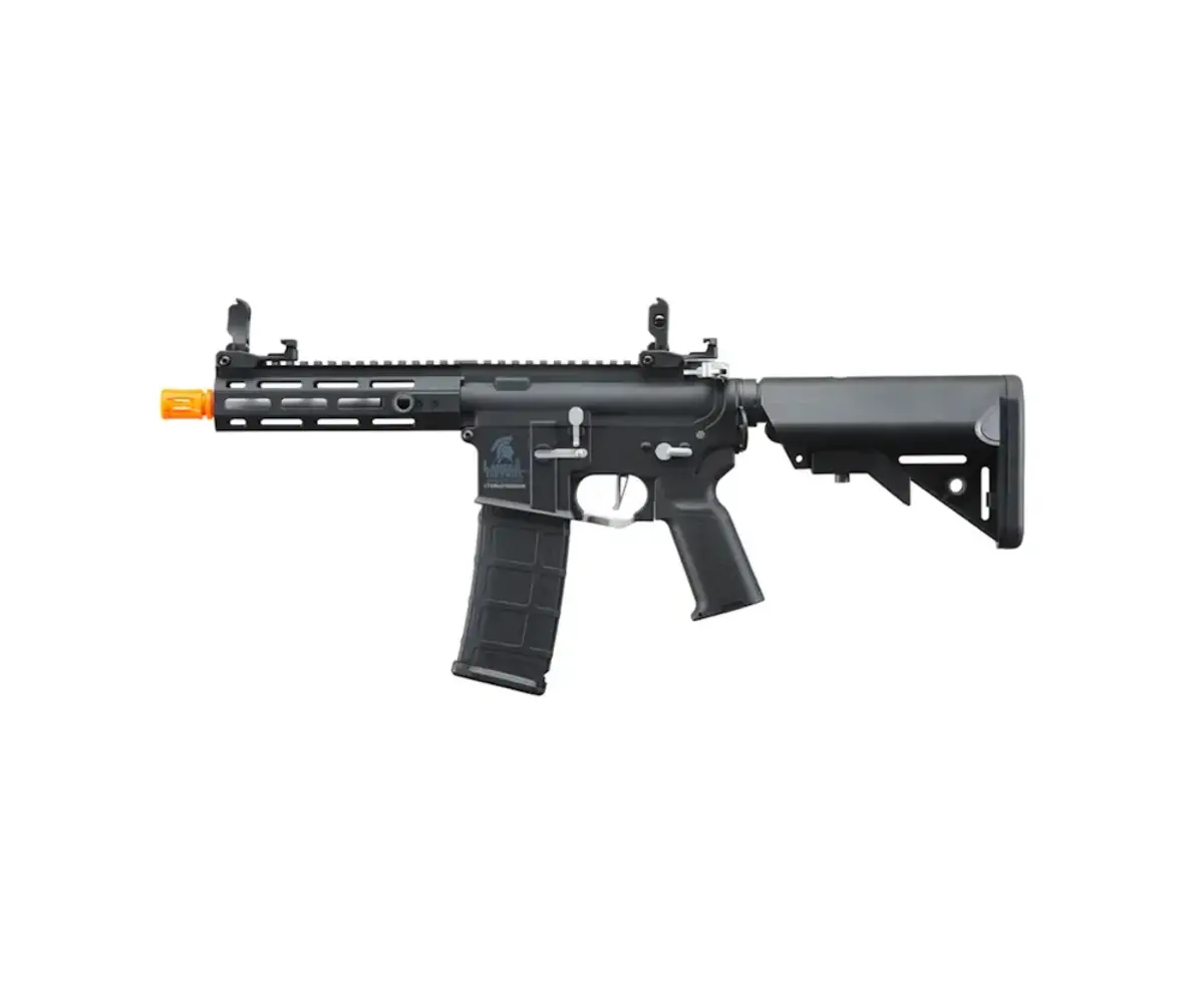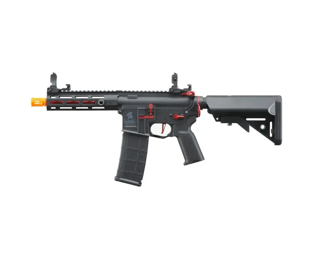 The Lancer Tactical Gen 2 Hellion M-LOK 7" Airsoft M4 AEG Core Series presents a formidable combination of durability, performance, and versatility. Crafted with a newly upgraded nylon reinforced polymer body, this rifle offers a tough yet lightweight platform ideal for prolonged engagements. Its ergonomic design, including a redesigned lower receiver and adjustable front and rear sights, ensures comfortable handling and precise aiming even in intense skirmishes.