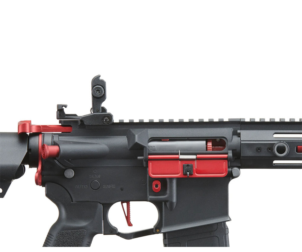 Featuring a full metal Version 2 gearbox with a quick-change spring system, the Hellion M-LOK delivers reliable and consistent performance. Its 6.03mm tight bore barrel and rotary-style adjustable hop-up unit enhance accuracy and range, making it perfect for long-range engagements. Equipped with a 140-round mid-cap magazine, a 9.6v battery, and a smart charger, this rifle is ready to dominate the battlefield straight out of the box.