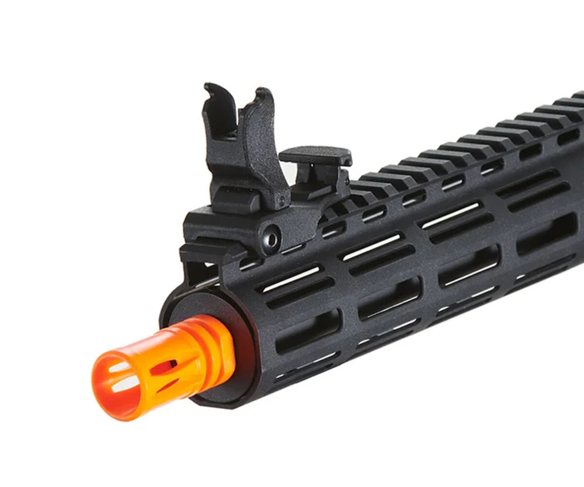 The Lancer Tactical Gen 3 ZION ETU Archon 9" M-LOK Airsoft M4 AEG w/ Delta Stock presents a formidable combination of durability, performance, and versatility. Crafted with a newly upgraded nylon reinforced polymer body, this rifle offers a tough yet lightweight platform ideal for prolonged engagements. Its ergonomic design, including a redesigned lower receiver and adjustable front and rear sights, ensures comfortable handling and precise aiming even in intense skirmishes.