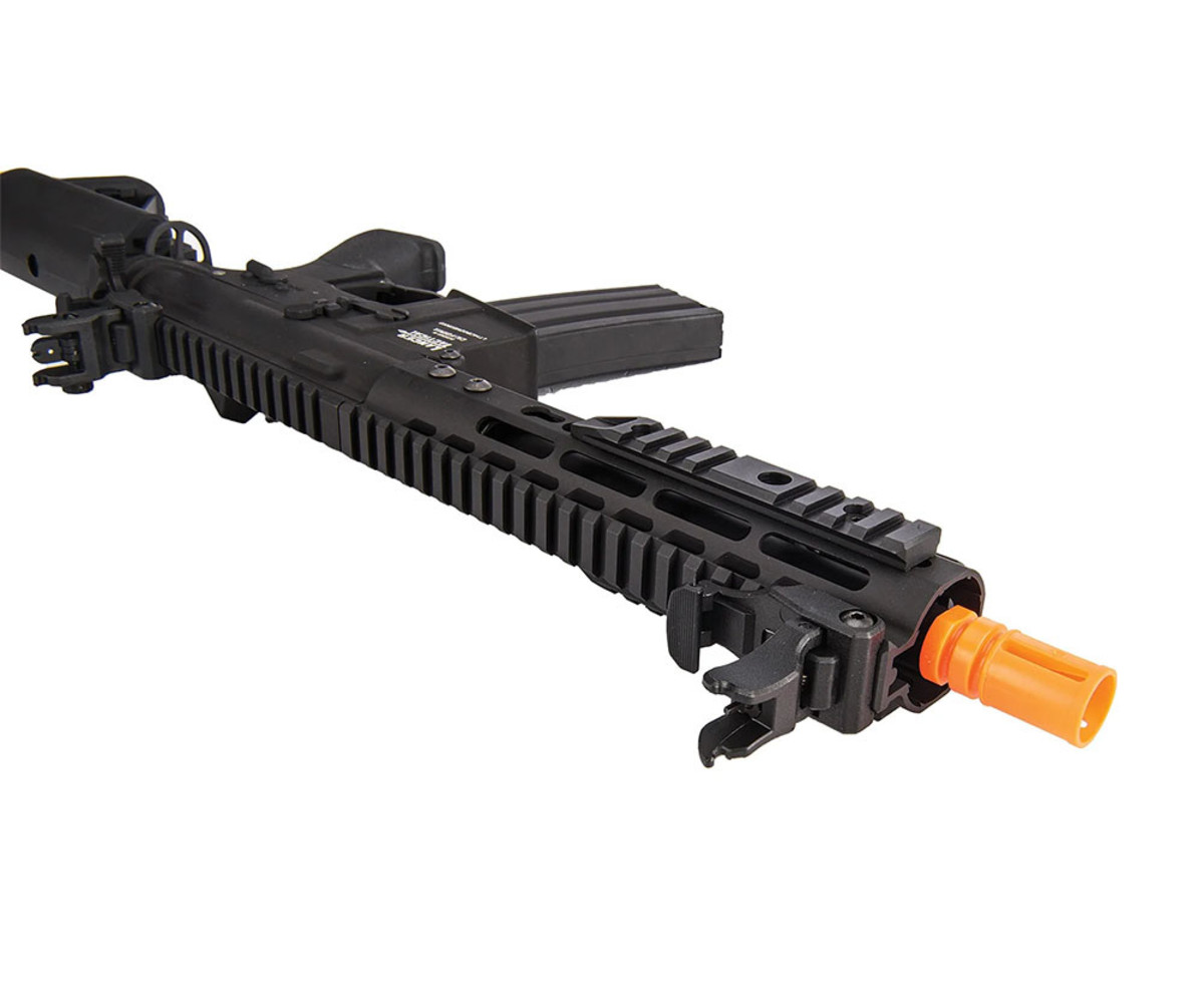Robust Construction: With a full metal upper/lower receiver, CNC machined buffer tube, and one-piece outer barrel, the rifle promises stability, zero wobble, and lasting durability. The nylon fiber stock and enhanced motor grip with positive texturing offer an improved handling experience.