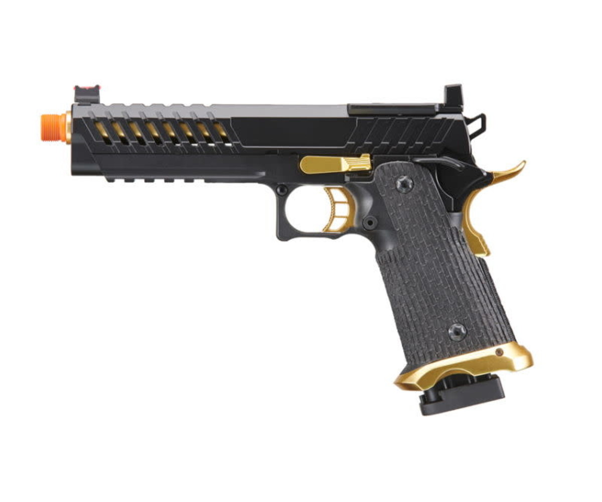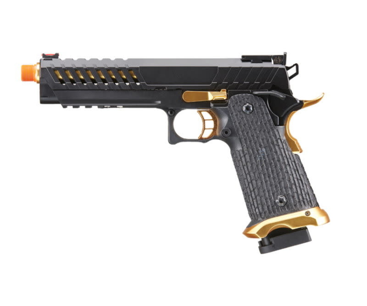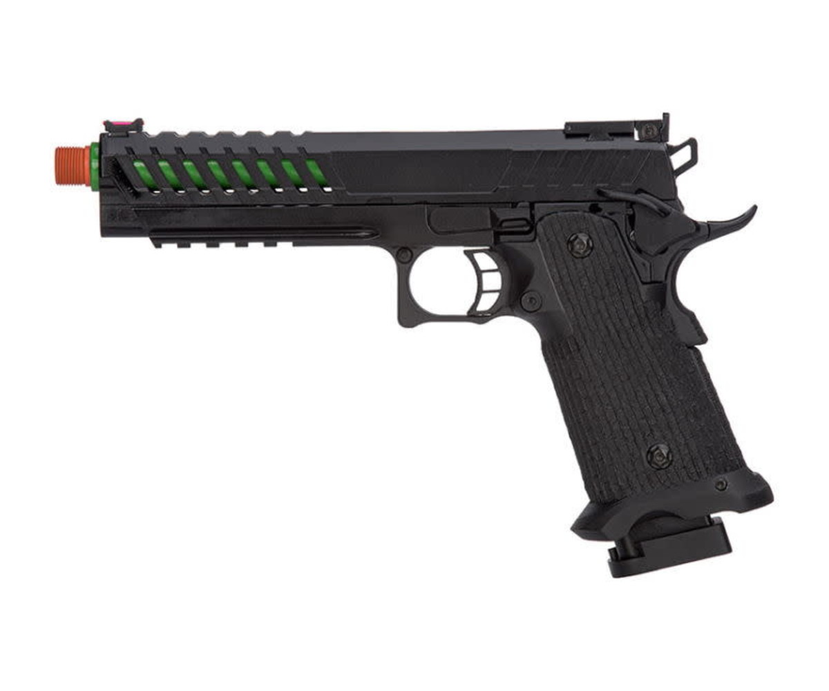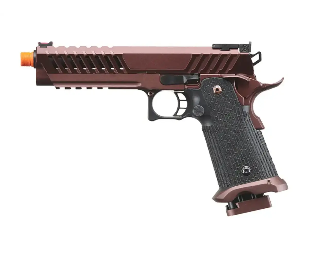 Enhanced Grip Texture: The aggressive stippled texture on the polymer grip ensures a secure hold even in the most intense airsoft skirmishes. Unlike standard Hi Capa grips, this enhanced texture is permanent, offering a significant improvement in handling without the need for aftermarket modifications.