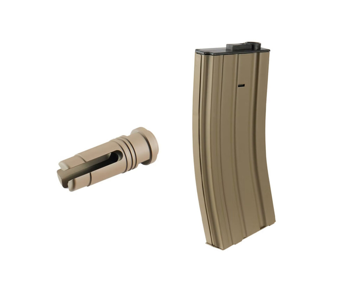 - Authentic L119A2 MilSim styling with Tan full metal receiver