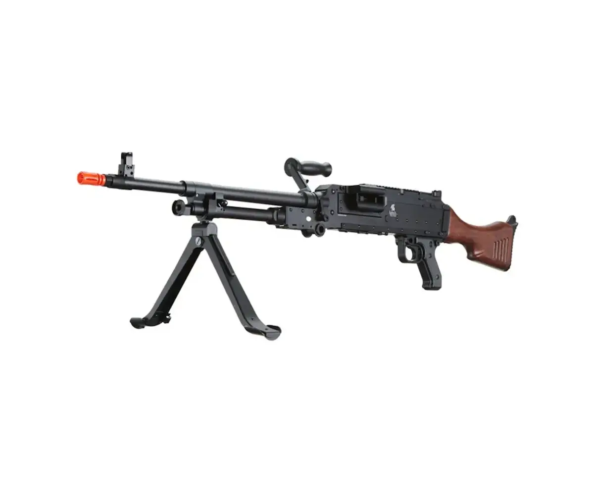 Lancer Tactical M240W Full Metal Electric Light Machine Gun AEG with Box Magazine – Black & Wood