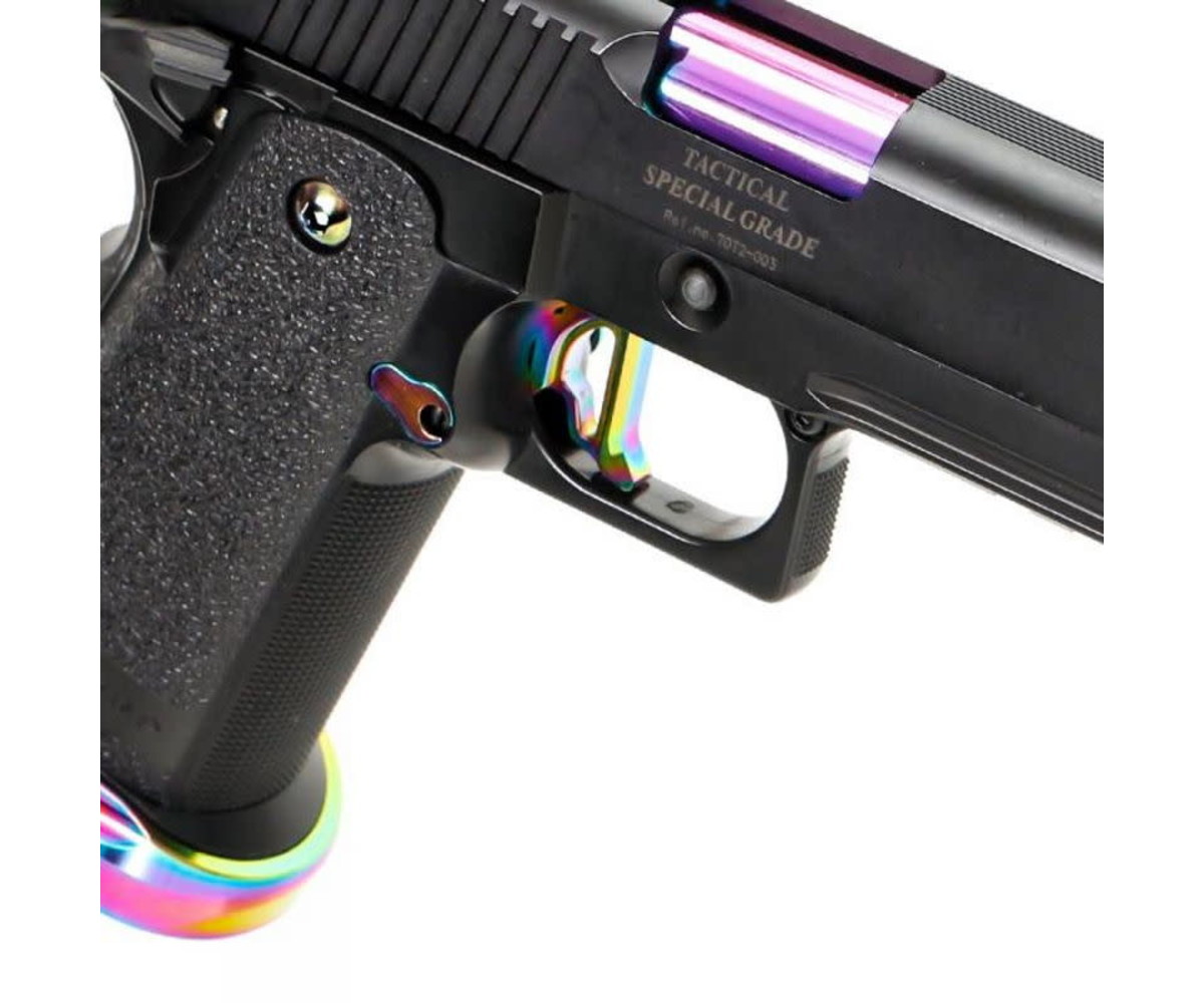 The Omega-style trigger is designed with high speed and accurate shooters in mind. Highly compatible with a wide variety of 2011 Hi Capas and M1911 or M45 type guns.