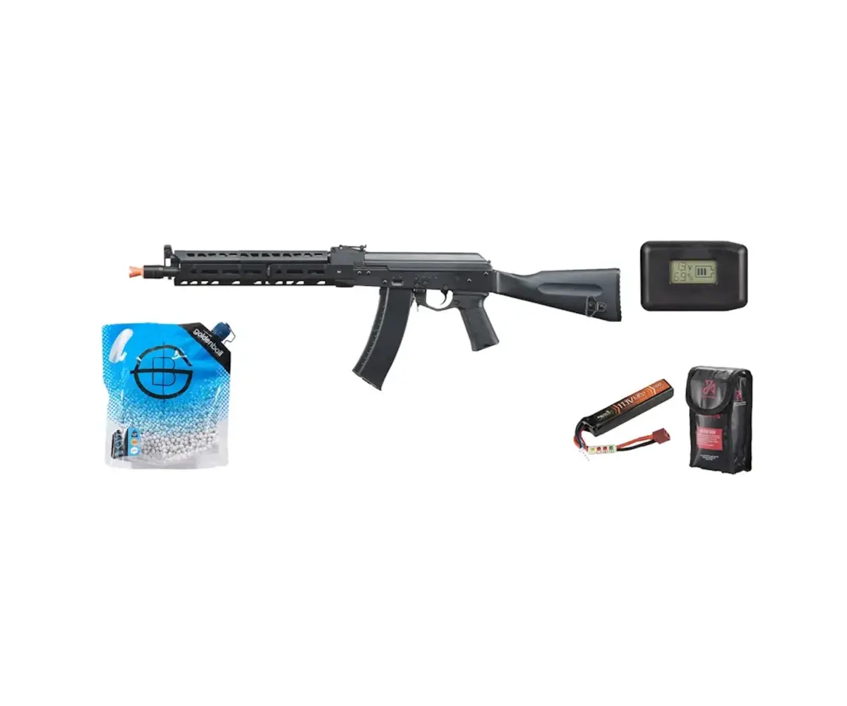 Package Includes: Rifle, Magazine, Manual, 11.1v LiPo Battery, LCD Balance Charger, Bag of 0.25g BBs
