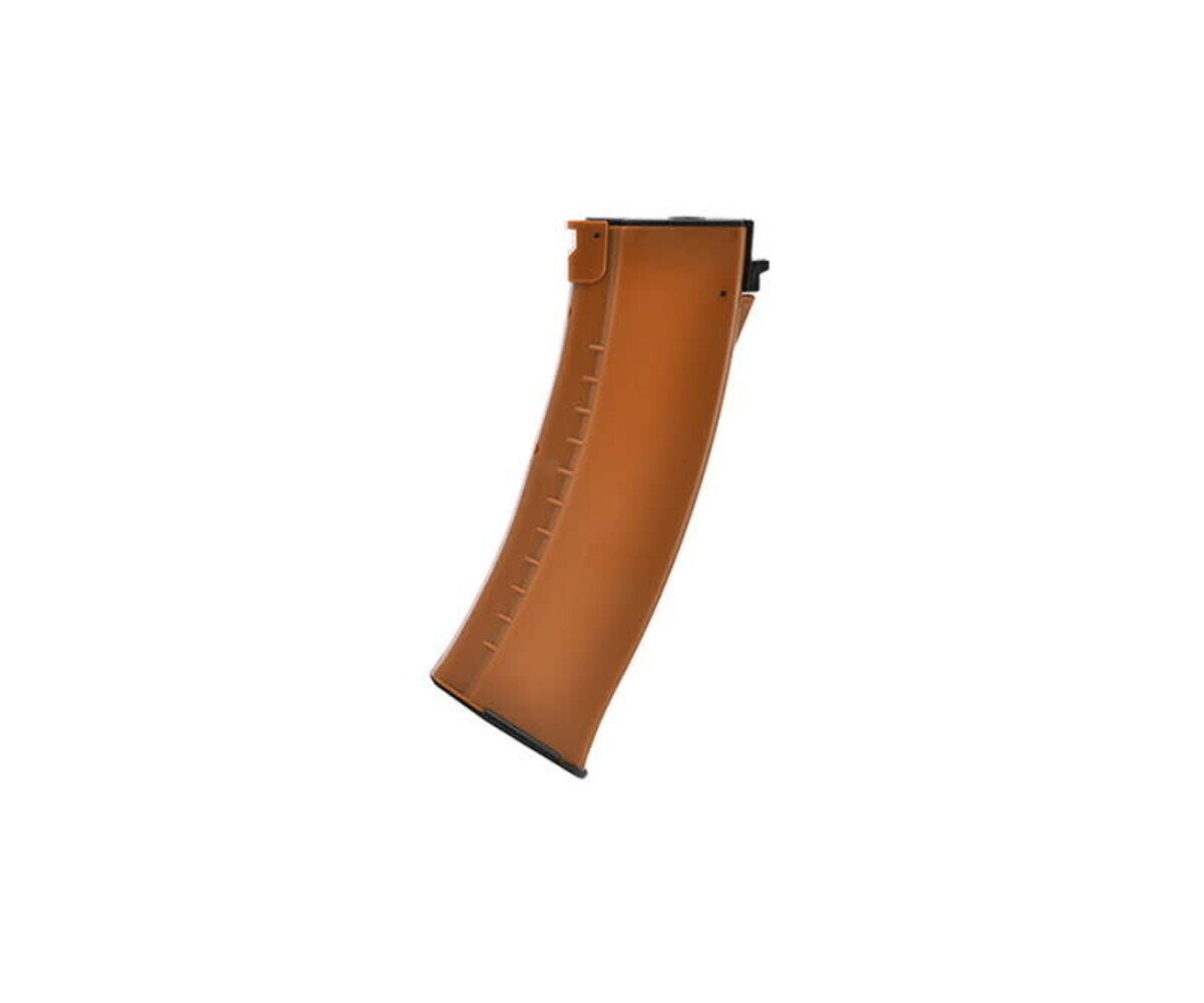 Constructed from rugged polymer material, this magazine offers a lightweight alternative to traditional metal magazines without compromising on durability. Weighing in at just 9 ounces, it won't weigh you down during intense battles while still ensuring long-lasting reliability. The stylish bakelite color adds an authentic touch to your AK airsoft gun, making it stand out on the field and catching the attention of both teammates and opponents.