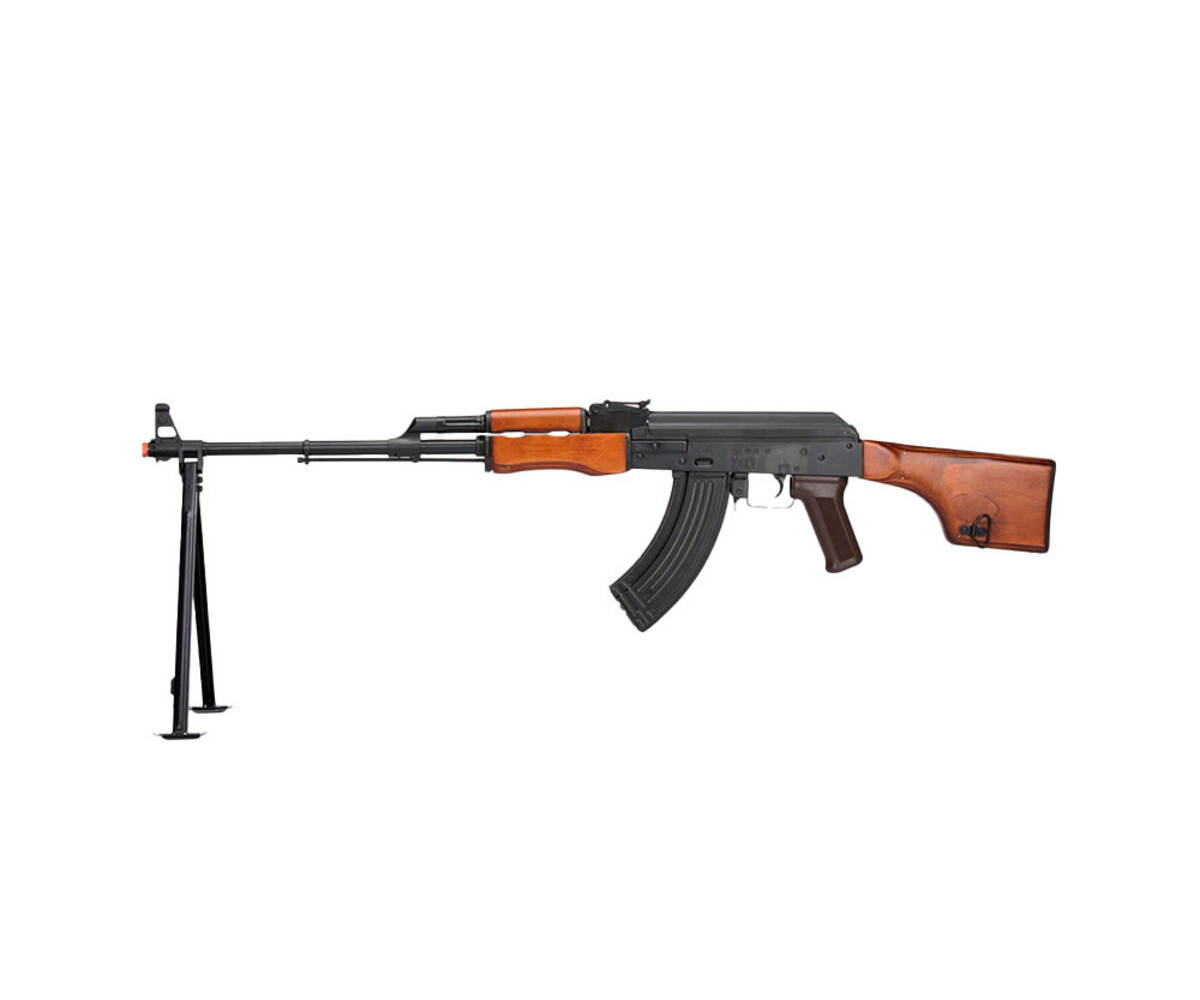 Step into the world of realism and firepower with the LCT RPK Electric Rifle, a faithful reproduction of the iconic Soviet light machine gun. This beast of an AEG is built for players who crave authenticity, durability, and serious performance on the field. With its full stamped steel construction and beautifully finished real wood furniture, this RPK doesn’t just look the part—it feels it. Whether you're laying down suppressive fire or holding a defensive line, the integrated folding bipod and rock-solid internals give you the tactical edge.