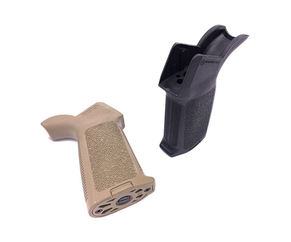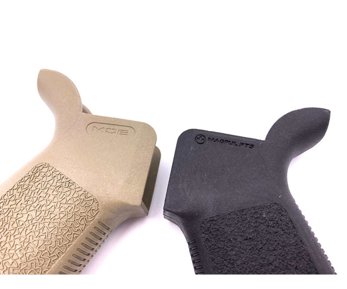 The Magpul PTS MOE Grip (Magpul Original Equipment) is a drop-in upgrade for the standard AR15 / M4 pistol grip. The ergonomic, hand-filling design combines anti-slip texturing with storage core capability. With a similar shape to a 'medium' sized MIAD, the one-piece Dupont Zytel polymer construction provides simplicity and a reduced cost while still maintaining the durability needed to withstand operational environments.
