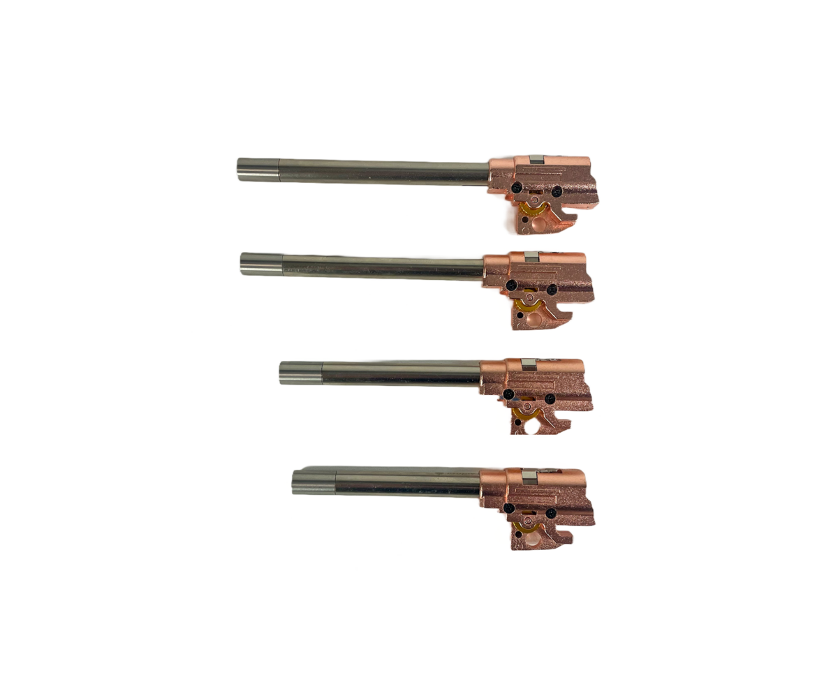 Let us help simplify your Hi Capa performance upgrading with this preassembled, drop-in barrel set featuring the most sought after Maple Leaf upgrade components. These sets are professionally assembled by our technicians for optimum performance and durability. Featuring Maple Leaf Hi Capa Hop Up units, we integrated them with a Crazy Jet 6.02mm tightbore stainless steel inner barrel and silicone MR Hop gas gun buckings. You can select your desired length and bucking hardness using the drop menus (subject to availability).