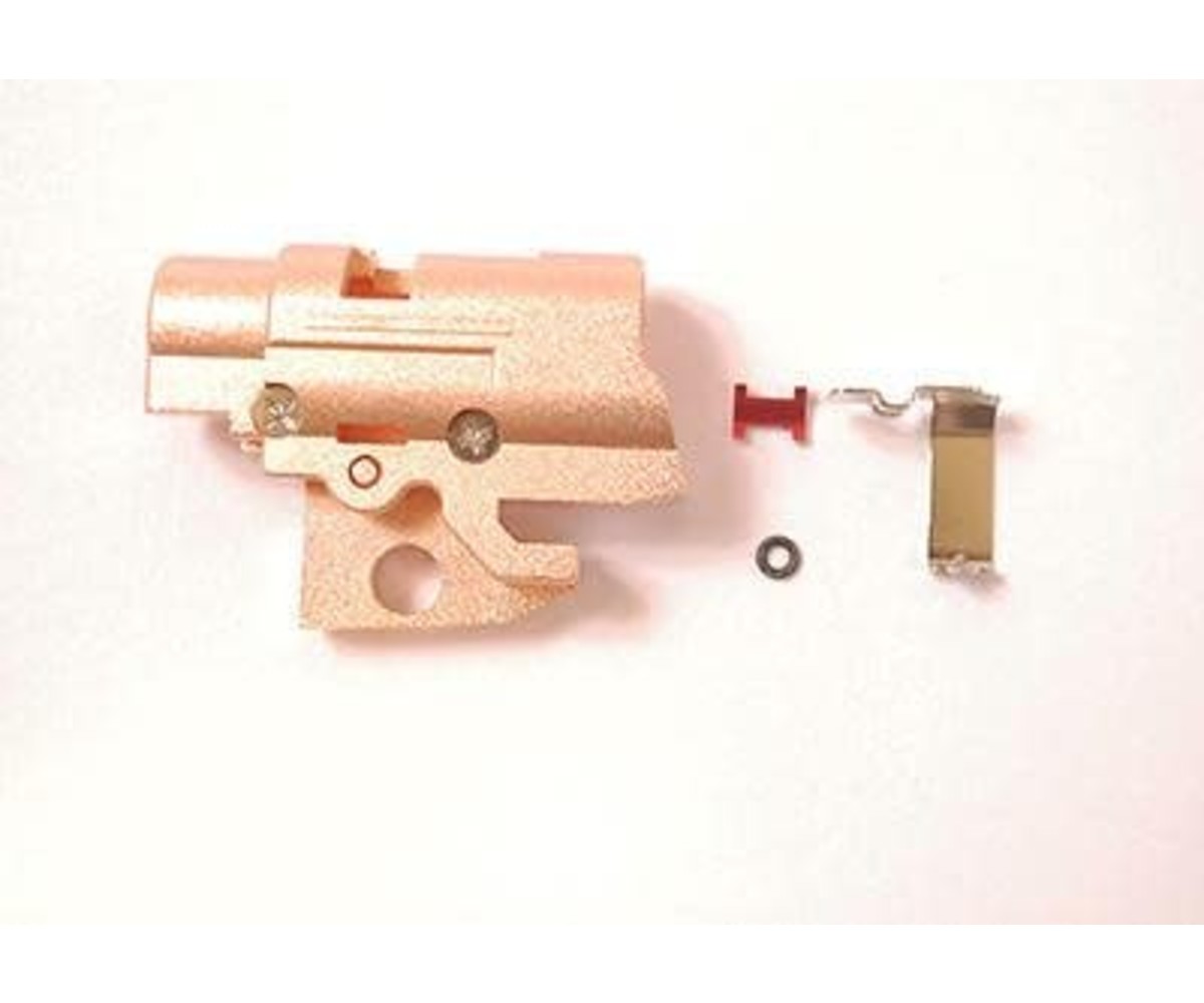 This is a complete replacement kit for the stock hop-up unit. Including new screws and applicator arm. The chamber by itself will give you a better seal between your nozzle and bucking. These tighter tolerances will help give you a wider range of adjustment and help to eliminate your adjustment from wandering.