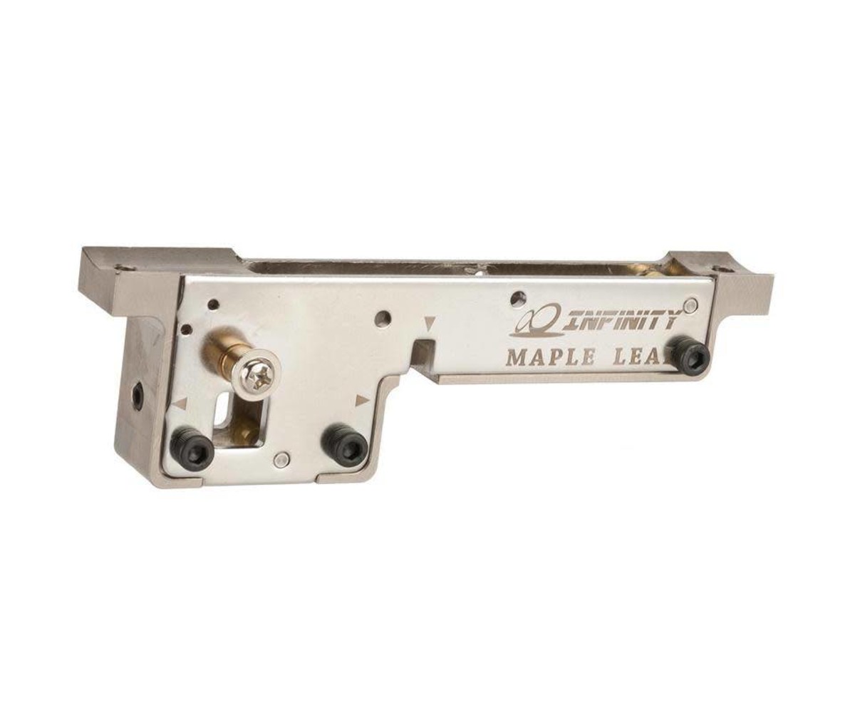At last! An affordable, incredibly strong trigger box for the VSR series rifles. The Maple Leaf Infinity trigger box is a full CNC steel trigger box with adjustable trigger and sear settings. You can install your original VSR trigger components, but we highly recommend you install the Maple Leaf steel sear set. The trigger box is a fantastic way to upgrade the accuracy of your rifle by exerting total control over the trigger pull. A clean, crisp trigger pull is the foundation for building the perfect sniper system. Compatible with all VSR systems from Tokyo Marui, WELL, and the FN SPR.
