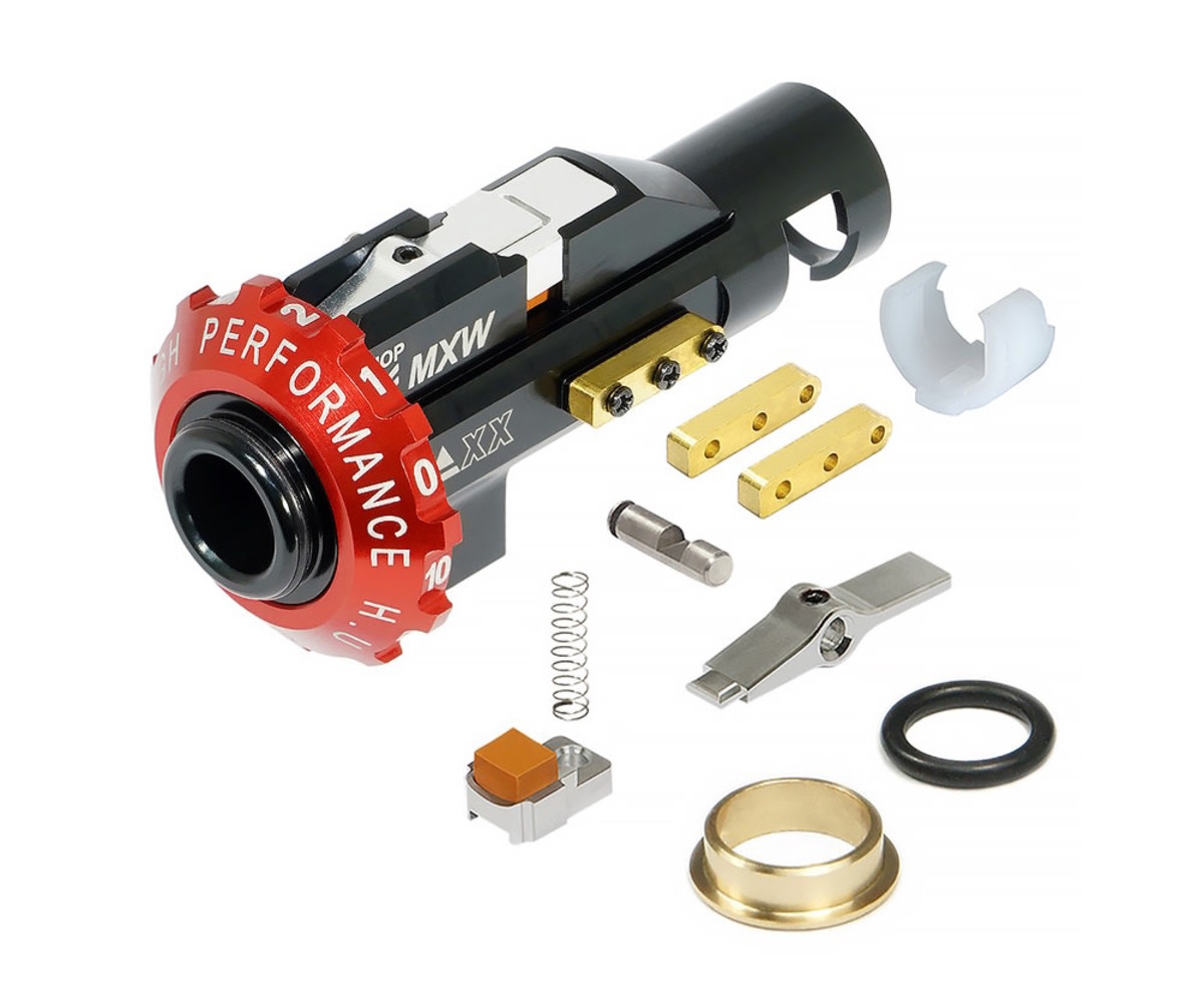 The Hopup Chamber unit is built with an aluminum Rotary Dial Knob for fine hopup adjustments, the precision Hopup Lever and to keep the BB shooting accurately and consistently on every single shot and is fully compatible with most aftermarket soft and hard rubber buckings without losing FPS or dropping BB during use.