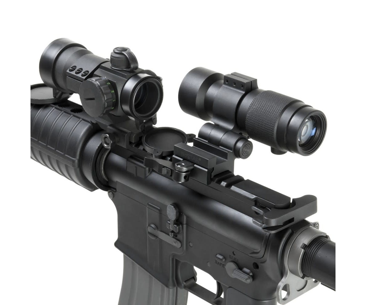 This mount quickly flips to the side to allow unblocked vision of your red dot. A magnification unit like this with a high tech mount was previously only available for hundreds of dollars, but now UTG is offering high clarity magnification and a QD flip-to-side mount for a very affordable price.