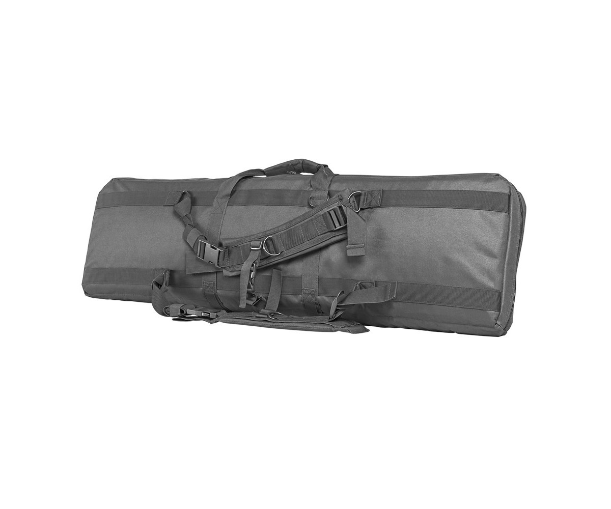 Vism by NcSTAR Double Carbine Case is a high-capacity gun carrier with a main compartment that holds 2 rifles up to 35" and are separated by a thick padded divider that is secured by 4 grip-strip straps. The secondary compartment is an organizer for cleaning supplies, tools, even a backup handgun. Complete with 3 big outer pockets for mags and ammo. Tactically terrific: 42" body is made from heavy-duty PVC with extra PALS looping on each end to customize the case. Includes 2 adjustable shoulder straps and adjustable sternum strap for a backpack style fit. All pockets use heavy-duty pullcord zippers and includes wrap-around carry handle straps along with top and bottom compression straps.