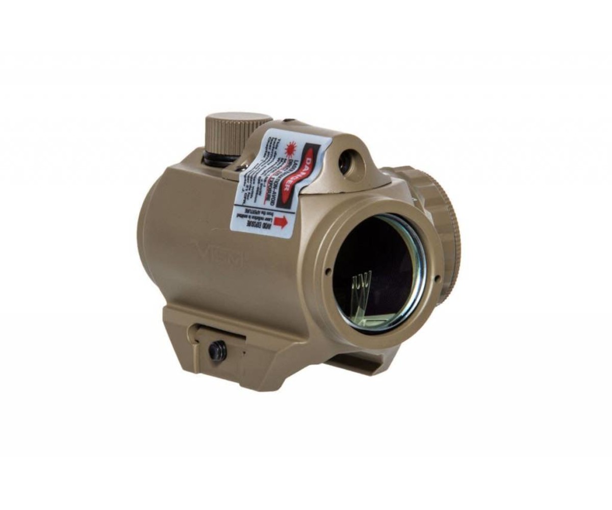 This NC Star Micro low profile optic combines a laser and dot reticle letting the player have two ways to aim at their opponent. The optic is metal with a glass lens, make sure to buy a lens protector to cover the front side of it. The elevation and windage caps come off easily for easy adjustment. The NC Star Micro green dot sight provides the player with a slim optic but crisp picture for a fast-paced airsoft environment where there is a bountiful amount of opponents to shoot.