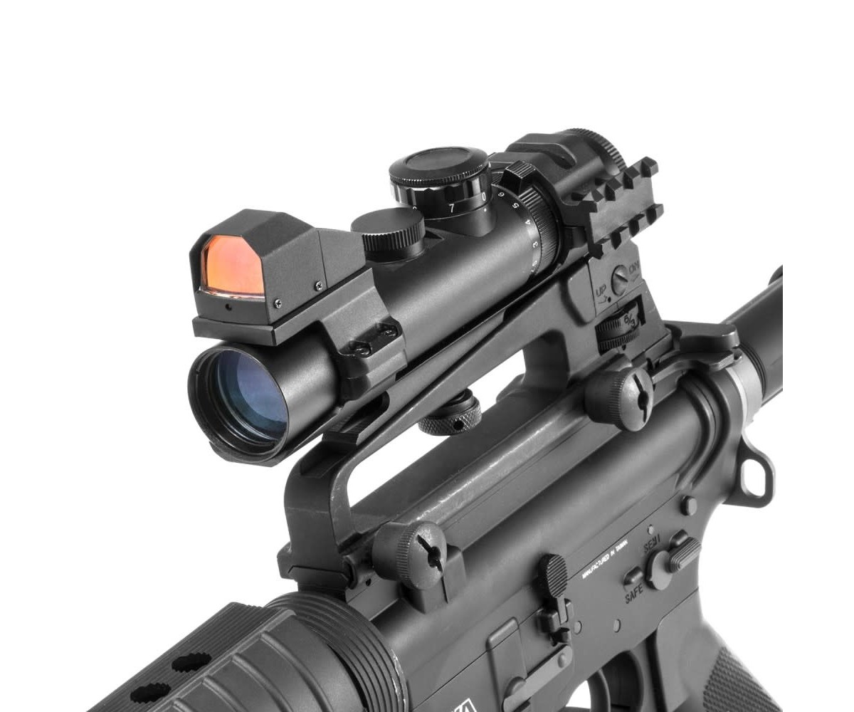 Need a little zoom to see where your shots are going but need to switch to a red dot for close-quarters combat? The NC Star compact prismatic scope offers the zoom of a scope but has a red dot mounted on top just in case an opponent comes in close.