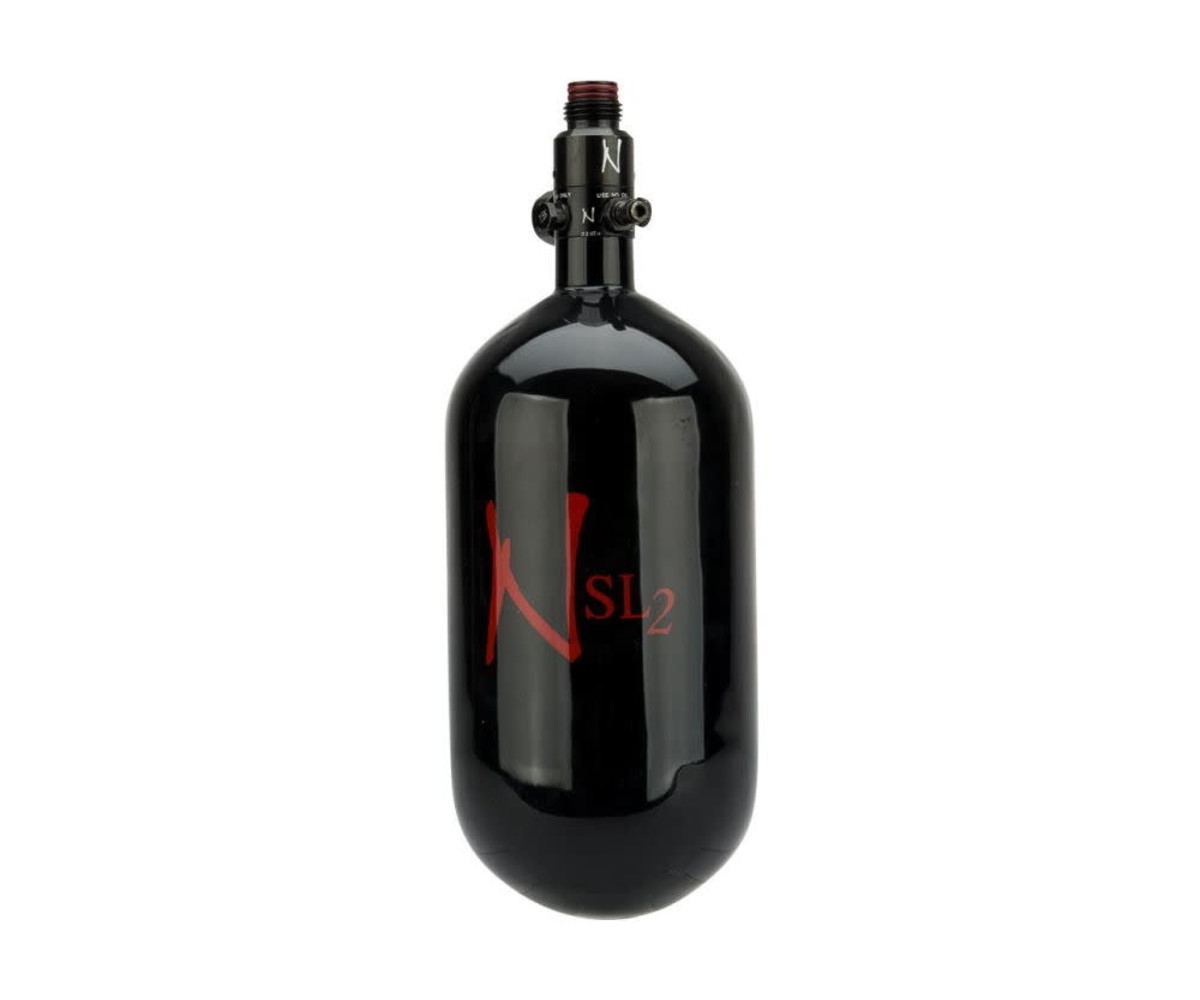 The Ninja SL Carbon Fiber Air Tank has set the new standard for how light a paintball air system can be. The tested and DOT-approved Ninja SL tank utilizes new technology that drastically reduces the weight of your air tank, up to 3/4 of a pound difference. This tank is a standard output tank that outputs at approx 800 PSI.
