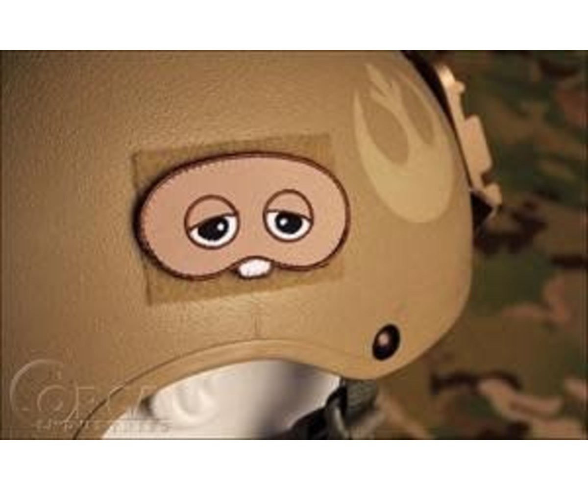 Measures 3" x 1.5" in desert tan color scheme. Velcro backed.