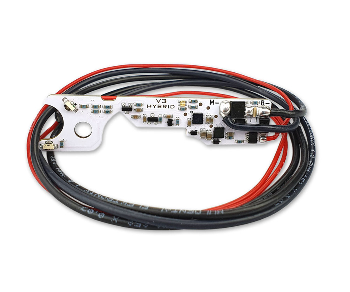 Perun V3 Hybrid replaces mechanical contacts in your airsoft replica or gel blaster and provides lots of useful features. Optical and magnetic sensors allow to eliminate many moving parts that are prone to damage, thus increasing the reliability. Adaptive trigger control allows switching from a very short trigger travel to a long one even in the field, with almost any trigger, including stock ones. Works without the need for any modification with most V3 gearboxes in Tokyo Marui standard. For details and exceptions please refer to the manual.