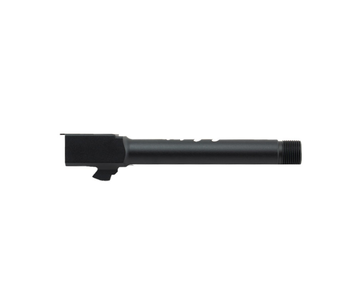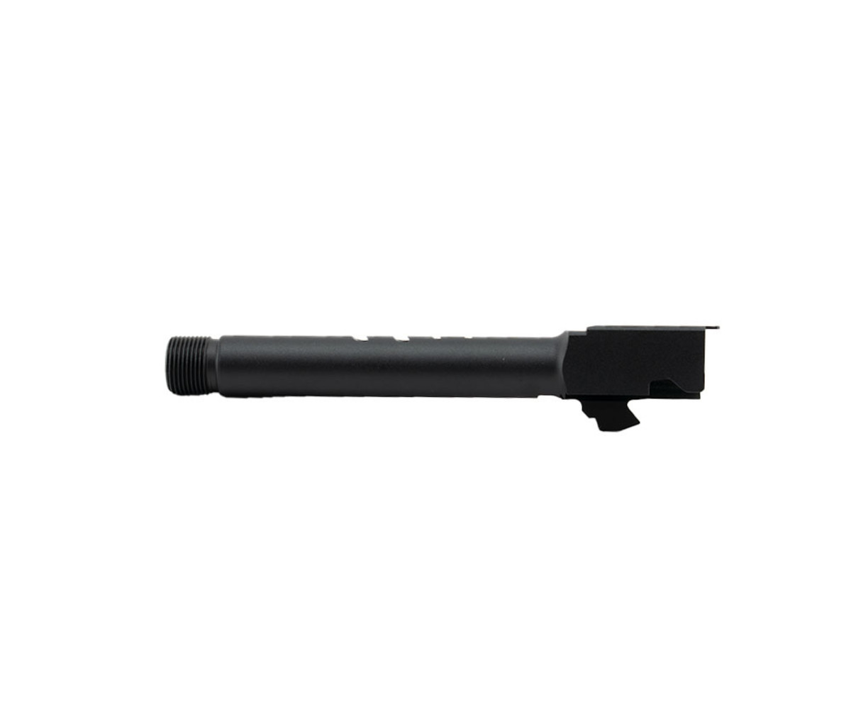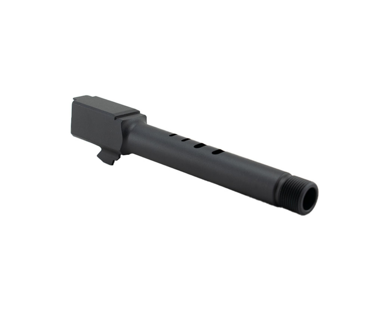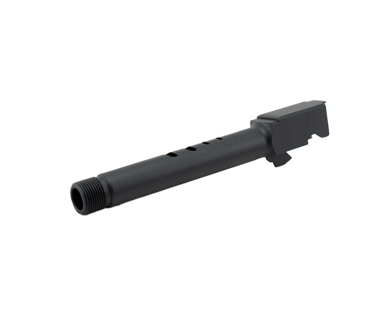 This replacement threaded barrel for the Glock 18C and 17 features precision-crafted 14mm threading to allow most barrel attachments. The matte finish has a weather protective coating that will protect the barrel through harsh weather. Does not fit CO2 half/non-blowback models. Not for airgun/pellet gun use.
