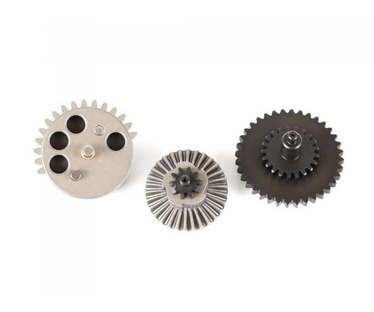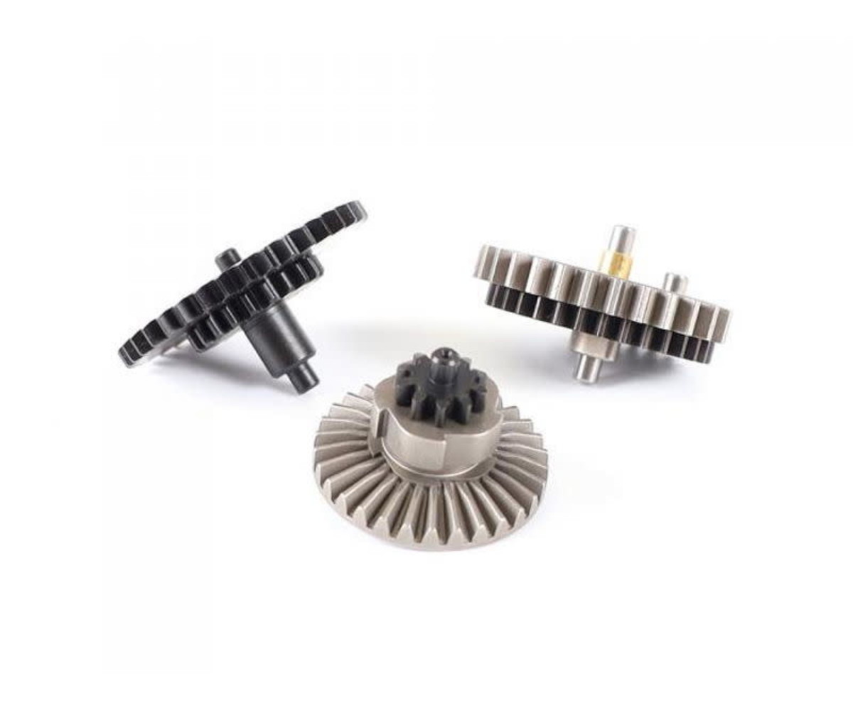 The proven EG Hard Gear series with over 10 years of service are precision machined, made in Japan, heat treated, and forged to the highest standards. Due to such precision machining, you can expect a much quieter gear mesh sound even at higher FPS and fire rates. Tested on the industry standards of a 11.1v 20c lipo battery with a 40k high torque motor on a MS135 spring (400+ FPS), the EG Hard Gear set withstood over 10,000 rounds of continuous usage with no visible wear.