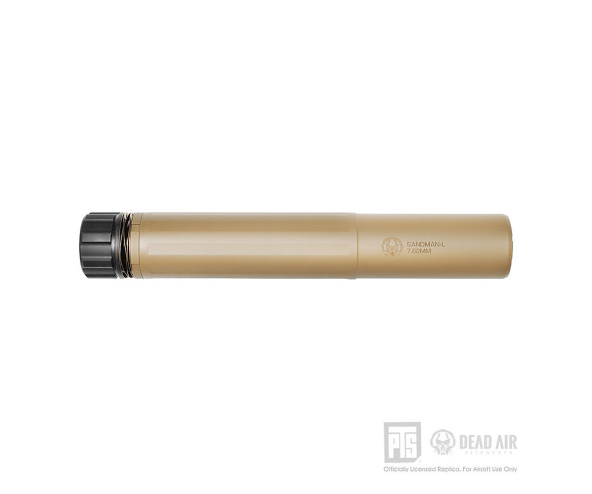 The PTS Dead Air Sandman airsoft silencers and muzzle devices are precision made to faithfully replicate Dead Air Silencer products under official license.  The PTS version of the Dead Air Keymo mount system allows for tool-less rapid quick attachment and detachment of the mock suppressor and ensures secure precision mounting.  The PTS Dead Air suppressors are constructed from 6000 series aluminum and are available in multiple lengths – short K length, S length, long L length – and colors – Black and FDE – and will be available either as a mock suppressor or a tracer unit.