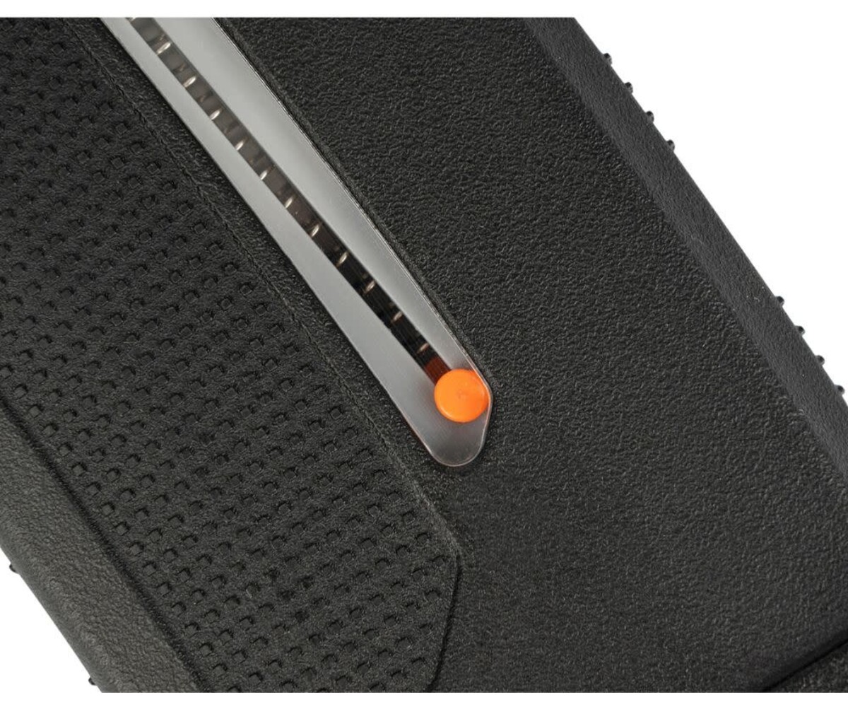 The standout feature remains the Fuel Gauge window. The high-visibility orange follower indicator lets you instantly see whether the magazine is full, partially loaded, or empty. As BBs are fired, the indicator travels down the window until it reaches the bottom when depleted.