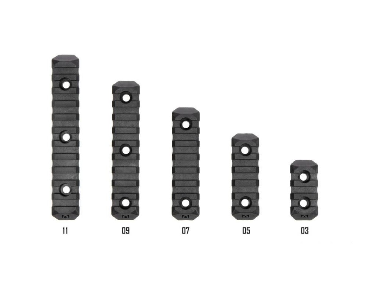 The PTS®Enhanced Polymer Rail Sections™(ERS™) - M-LOK are lightweight low profile 1913rail sections, made out of one of the strongest and an EP series hallmark Dupont™Zytel High Performance Reinforced Polymer. The double chamfered ends reducesnagging and are comfortable to index against.Available in 5 different lengths: 3, 5, 7, 9 and 11slots.