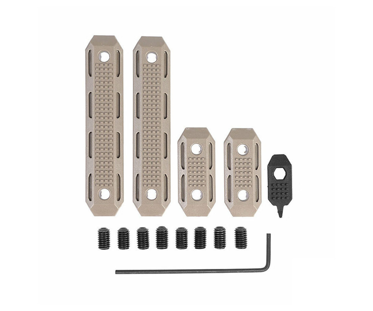 Each pack includes four (2 short & 2 Long) M-LOK covers and also includes an EP Mini Tool which can be used to assist in peeling off the rail cover more easily. The other side of the tool can be used as a flat head screwdriver.