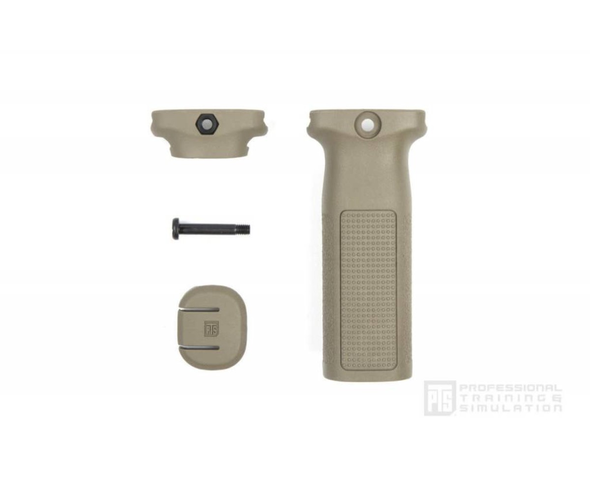 The PTS Enhanced Polymer Foregrip 2, or EPF2, has a carefully conceived, streamlined, ergonomic design with slightly revised texturing for superior grip and control. Dupont Zytel polymer construction and hardened steel hardware ensures its survivability under adverse use conditions. The EPF2 has also been revised with lower profile on top to be able to mount on to a wider variety of railed handguards. Like its predecessor, it features a storage compartment with a sliding access plate at the base, and channels at the top for battery wiring to be able to pass through. This allows the EPF to hold certain airsoft appropriate lithium polymer batteries (such as an 11.1V 1000mah airsoft battery. See specifications for internal cavity dimensions) for front wired electric airsoft guns thereby removing the need for a battery box. The compartment can also be used to store other miscellaneous items and tools.