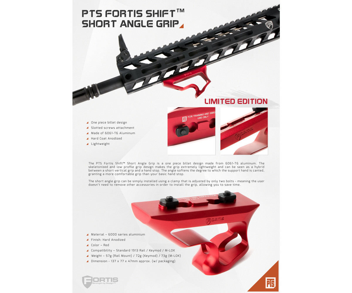 PTS PTS Fortis Shift Short Angle Grip MLOK Red Ltd Edition