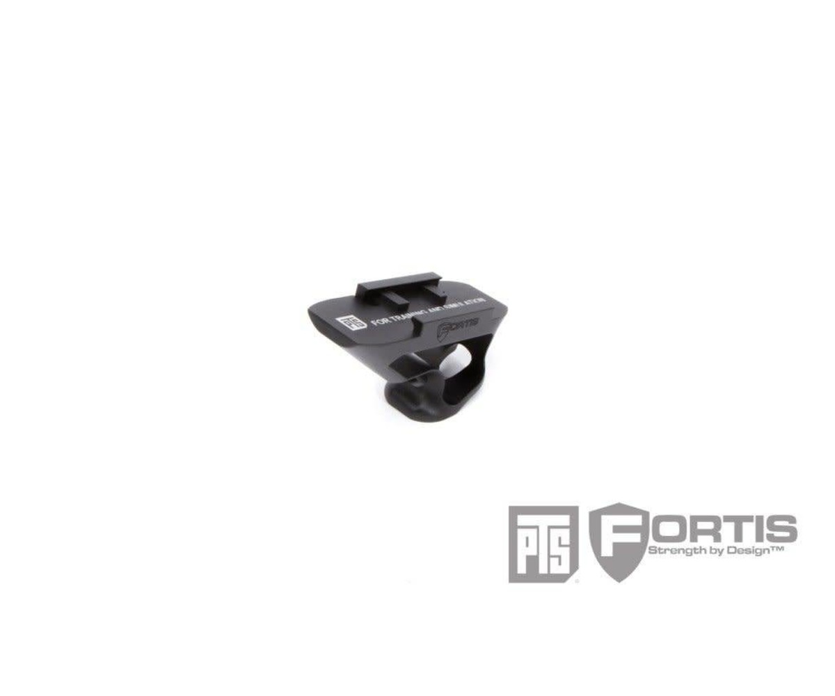 The PTS Fortis Shift Short Angle Grip is a one piece billet design made from 6061-T6 aluminum. The skeletonized and low profile grip design makes the grip extremely lightweight and can be seen as a hybrid between a short vertical grip and a hand stop. The angle softens the degree to which the support hand is canted, granting a more comfortable grip than your basic hand stop.