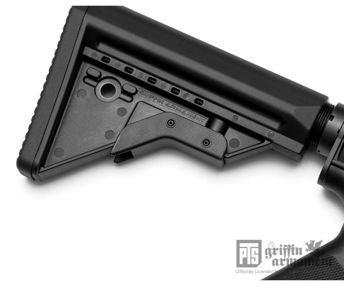- Griffin Armament M16A1-style polymer pistol grip for superior ergonomics