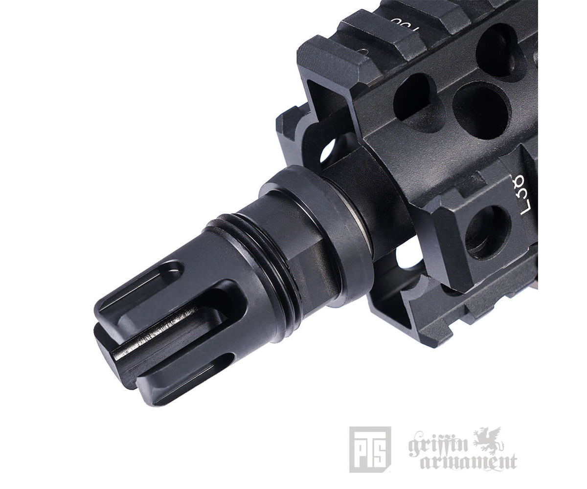 The fully licensed PTS Griffin Armament Taper Mount series flash hiders are manufactured from steel alloy CNC machined with QPQ treatment.