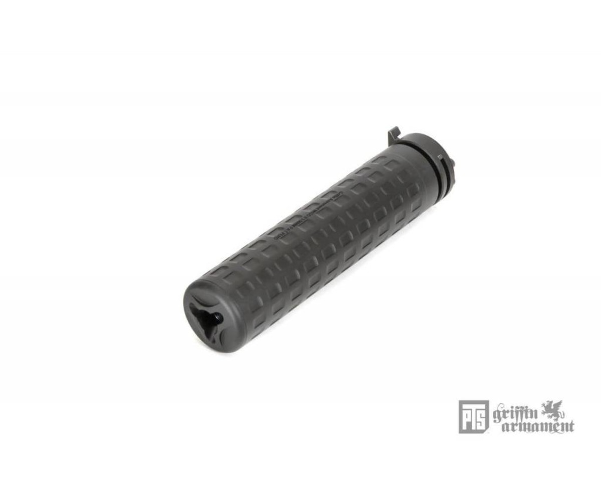 One of the top performing suppressors on the market, the PTS Griffin Armament M4SD-II is back with a second generation that encompasses the latest Griffin Armament suppressor design. The special machined fluted surface design reduces weight while increasing body strength. On the real suppressor, the increased surface area aids heat dissipation for greater longevity and durability during sustained use. The M4SD-II's compact 6.6 inch length aids in maneuverability and minimally affects the weight balance of the gun. It also features Griffin Armaments trademark SDQD mounting interface, well-known as one of the fastest and most secure mounting interfaces on the suppressor market.