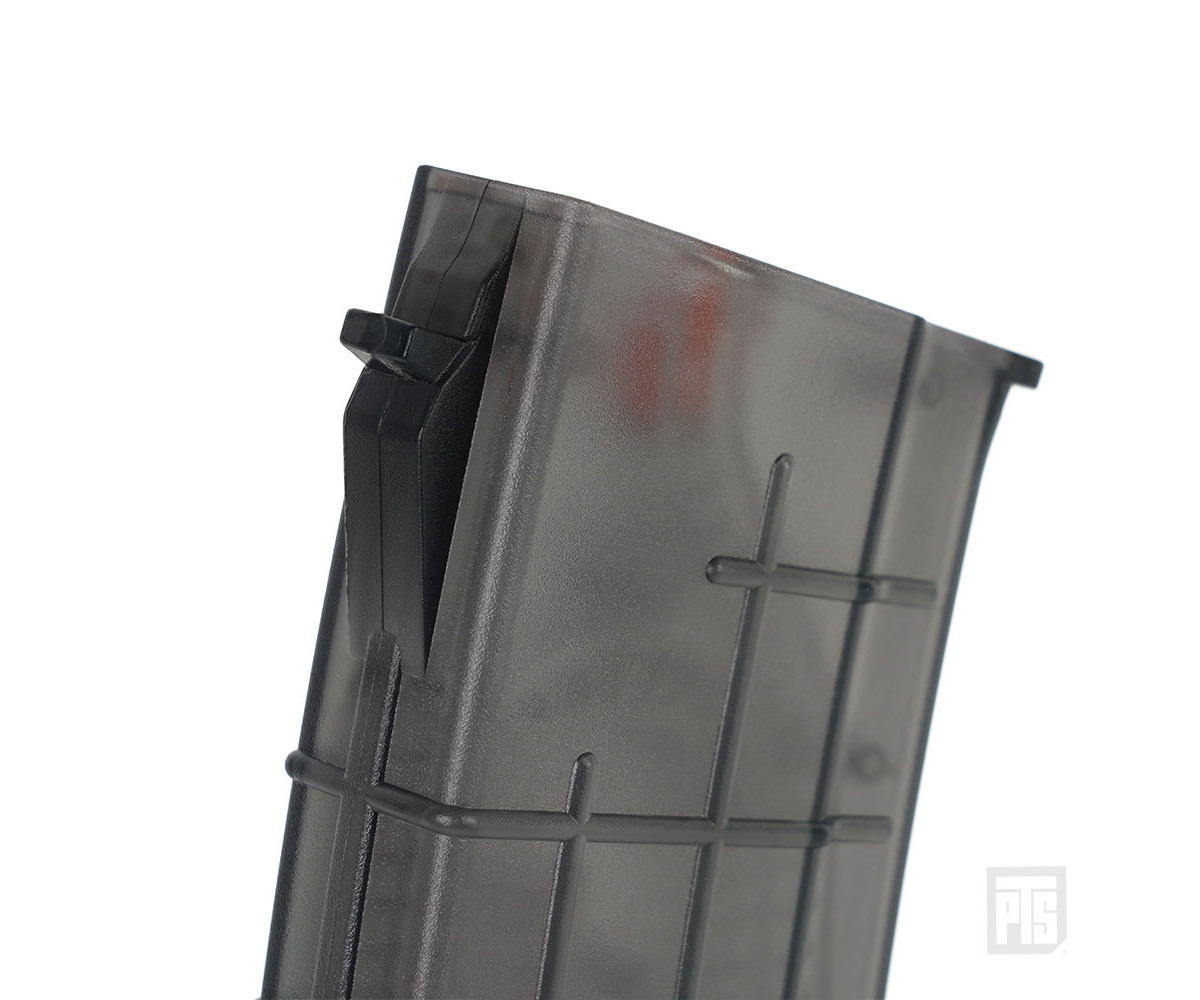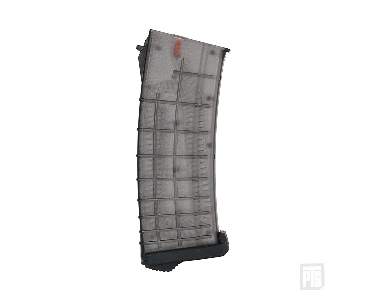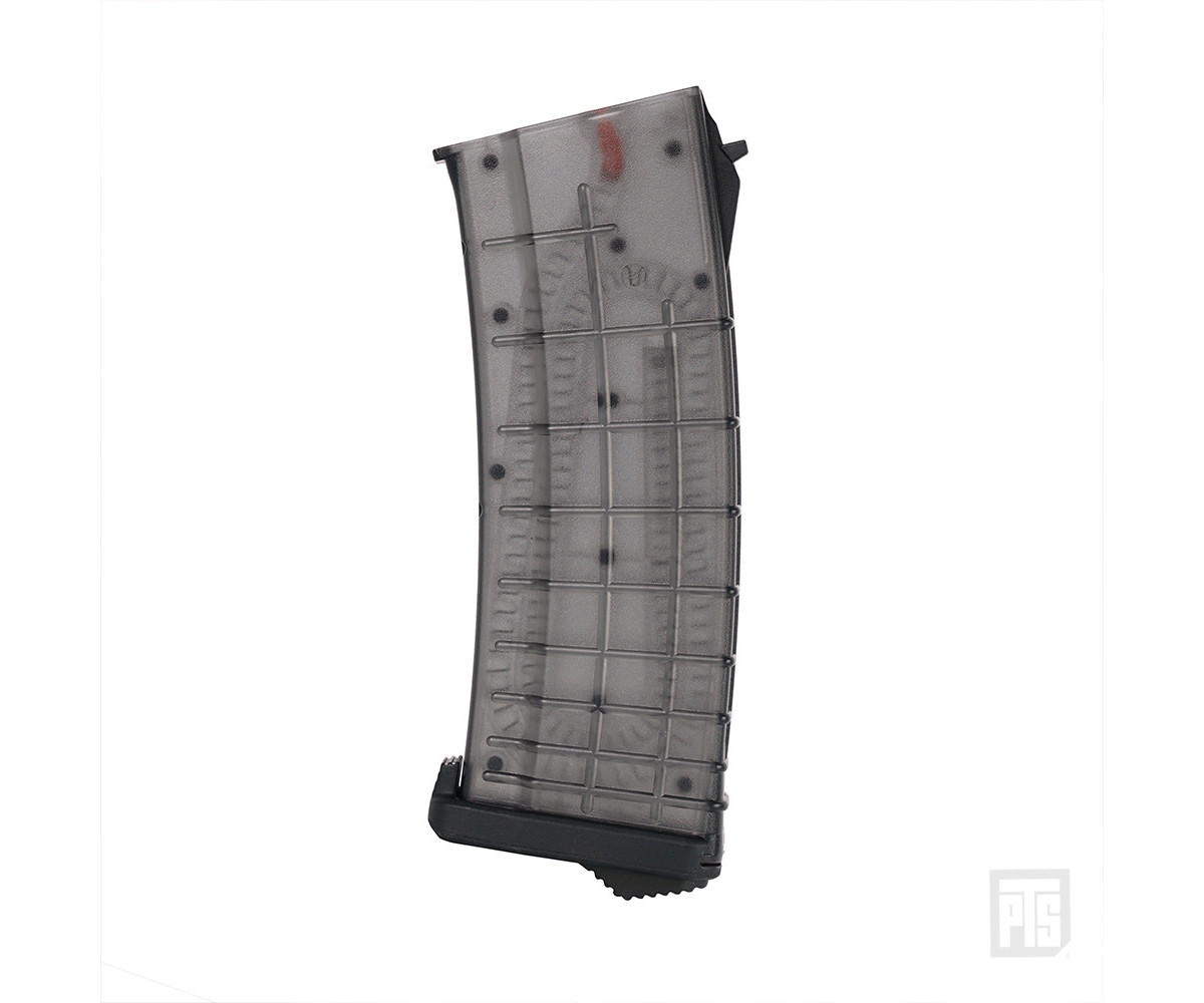 The PTS TPM-AK Magazine (AEG) is a mid-cap magazines for airsoft AK type electric guns. The magazine features 155 bb capacity, a translucent reinforced polymer body that can withstand rough field conditions and allow for easy visual identification of remaining rounds inside the magazine. It also includes the PTS EPM baseplate for bump or drop protection. The magazine is compatible with Tokyo Marui, CYMA, Arcturus AK Series, and most other AK AEG's.