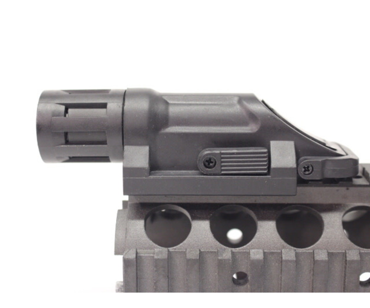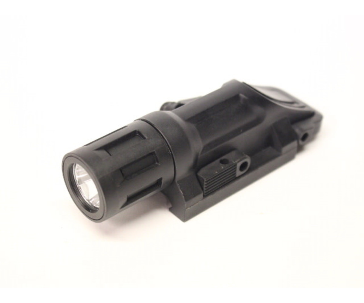 The AEX RMWL (Rail mounted weapon light) offers the player a sleek low profile weapon light, which attaches onto most Picatinny rails. This allows the shooter an ergonomic grip without compromising comfort. The weapon light takes a standard CR123A style battery and an easy quick detach system makes it an all-around choice for any player.