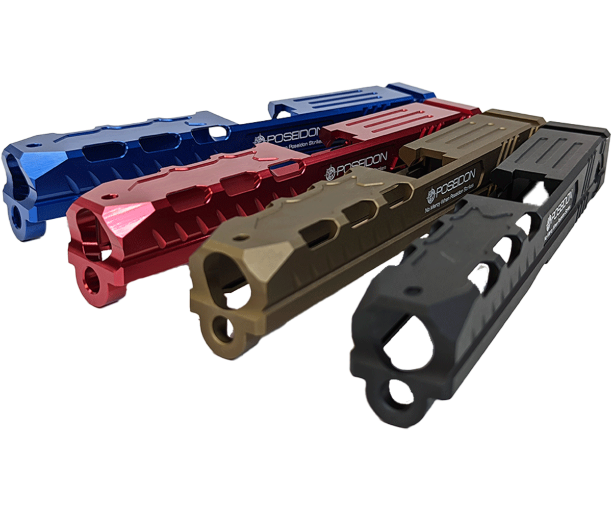 Precision machined from T6061 aircraft grade aluminum, these slides are designed to replace your G18C slide. The weight and dimensions are the same as your original slide, but you will get a MUCH BETTER LOOKING gun! Go for traditional black, or rev up your gun with electric blue, fire engine red, or dark bronze anodized colors!