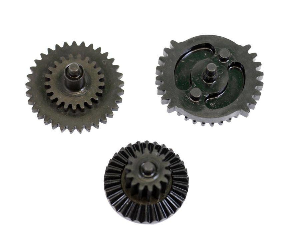 Siegetek gears are CNC Machined out of Chromium Molybdenum steel and are the strongest gears available for TM compatible AEGS. Each gear is precisely calculated and accurately produced which provides maximum efficiency and durability over traditionally produced gears. Siegetek gears are incredibly thick to provide higher bearing surface and improved structural durability. Siegetek gears are used in some of the most hardcore builds in airsoft and have been come to be known for their quality and durability, install these gears in your build and they will not disappoint.