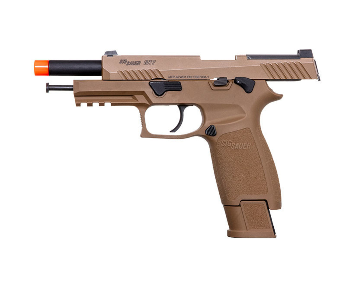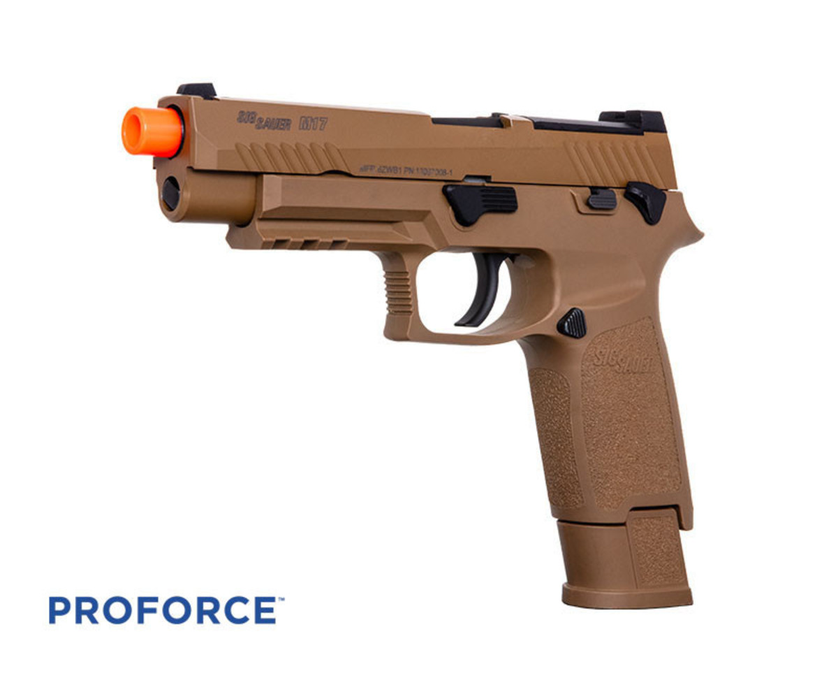In January 2017, the SIG SAUER P320-based M17 was awarded the United States Military's Modular Handgun System contract. Now you can own and train with a piece of history, as SIG SAUER introduces the SIG AIR ProForce M17 airsoft training pistol with the same unparalleled look and feel as the U.S. military's M17. The M17 airsoft training pistol comes in the same coyote tan as selected by the U.S. military.