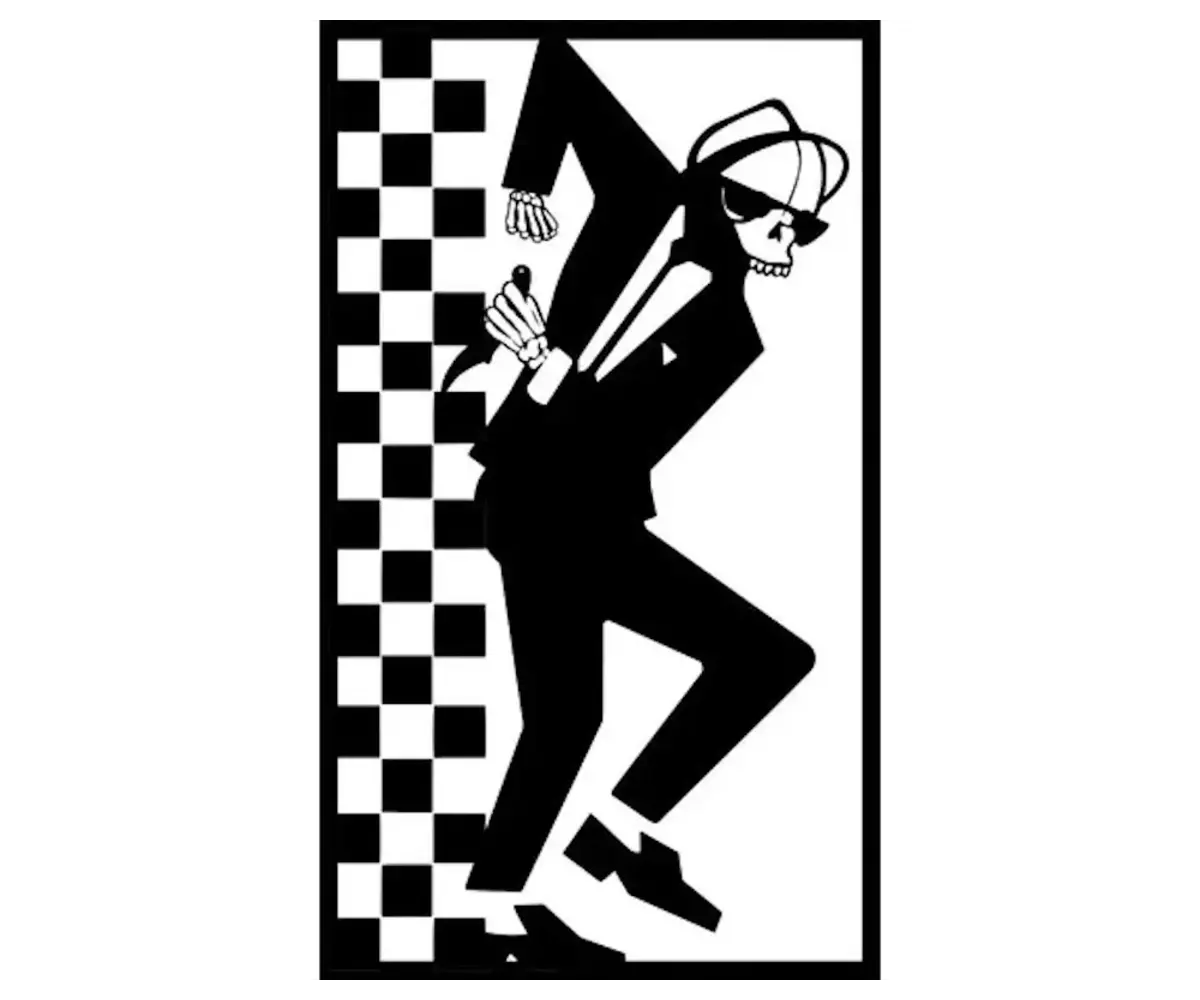 Key Feature or Design Note: The *SKA REAPER* patch blends the energy of underground counterculture with the quiet force of covert movement. Drawing inspiration from 2 Tone ska iconography, this 4" embroidered morale patch flips the script—replacing dancing shoes with desert boots and rude boy vibes with ghost-world intent. The skeletal smuggler strides across a checkerboard void, locked, loaded, and on mission. Whether you see a courier, a shadow, or a statement, this patch moves with purpose. A standout design from the collaboration between Sneakreaper Industries and Ed’s Manifesto.